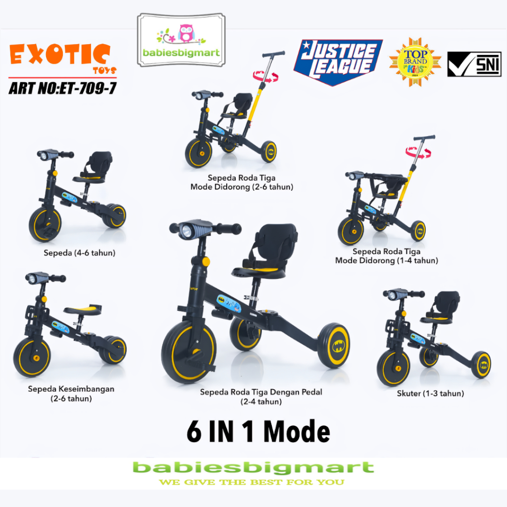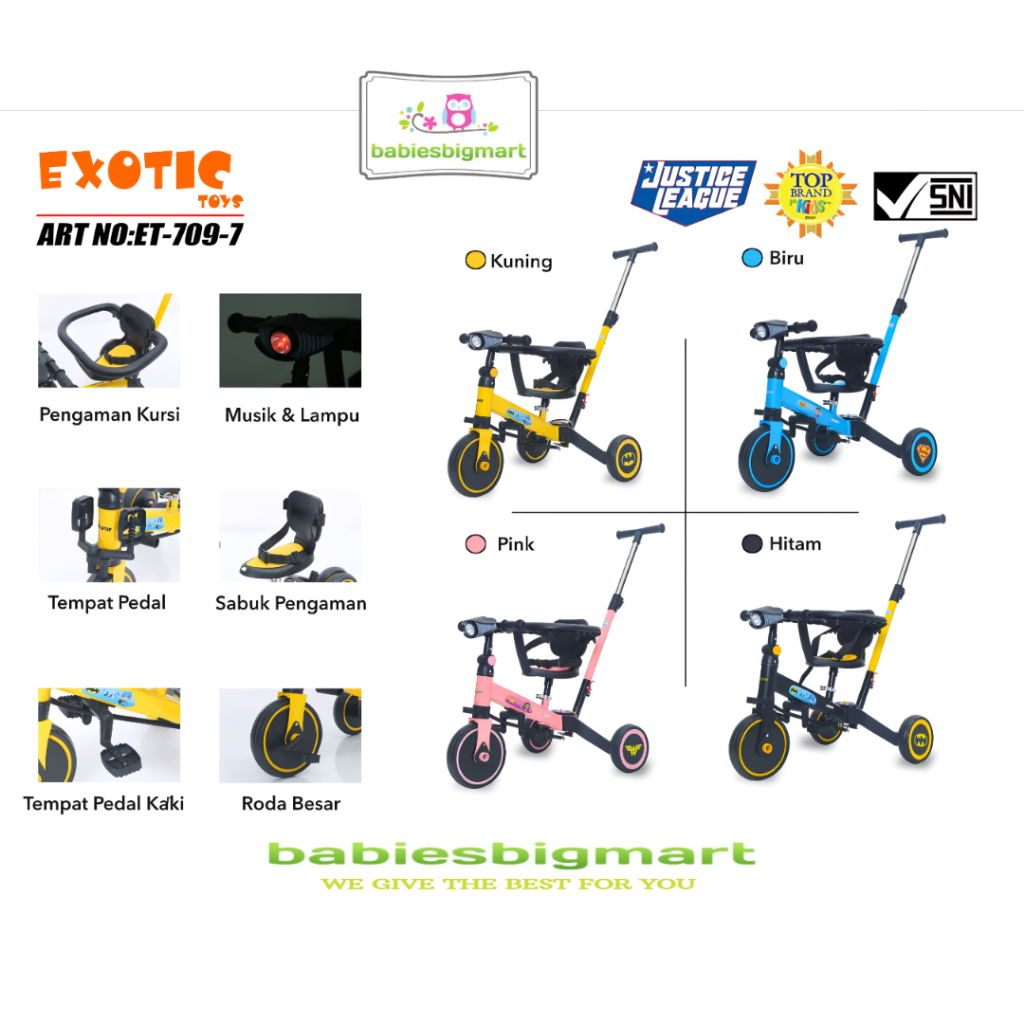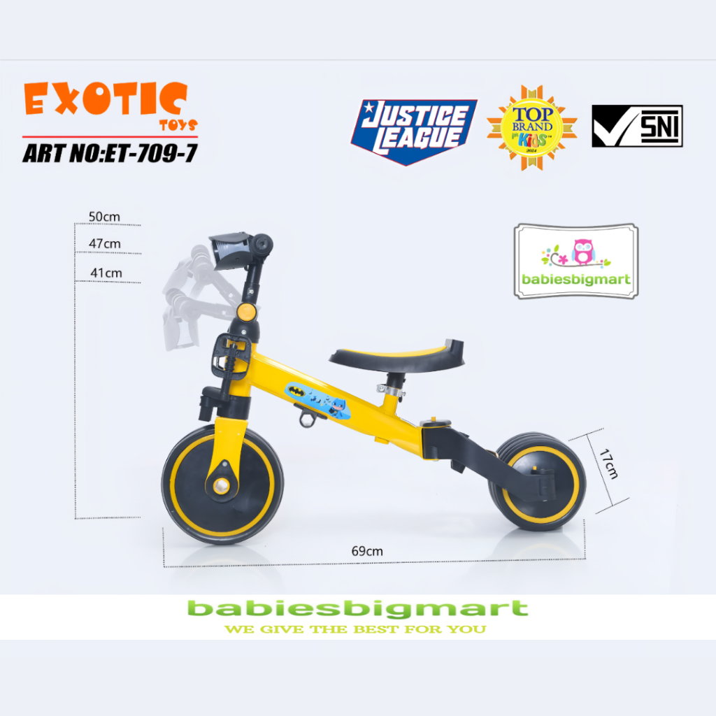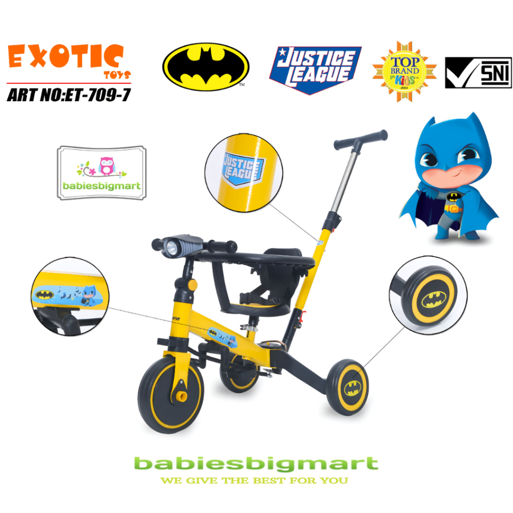 Sepeda Anak Roda 3 Tiga Balance Bike Exotic Et-733 Kereta Dorong Bayi Perempuan Laki Laki Usia 1 2 3 4 5 Tahun Murah