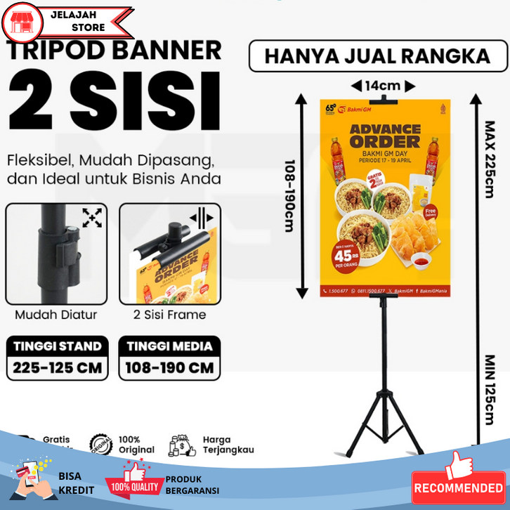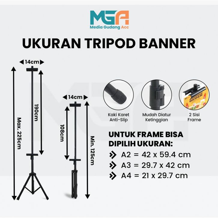 TRIPOD STAND BANNER TRIPOD BANNER 2 SISI DISPLAY AKRILIK TRIPOD STANDING FRAME FOTO WEDDING SANGAT KOKOH MURAH