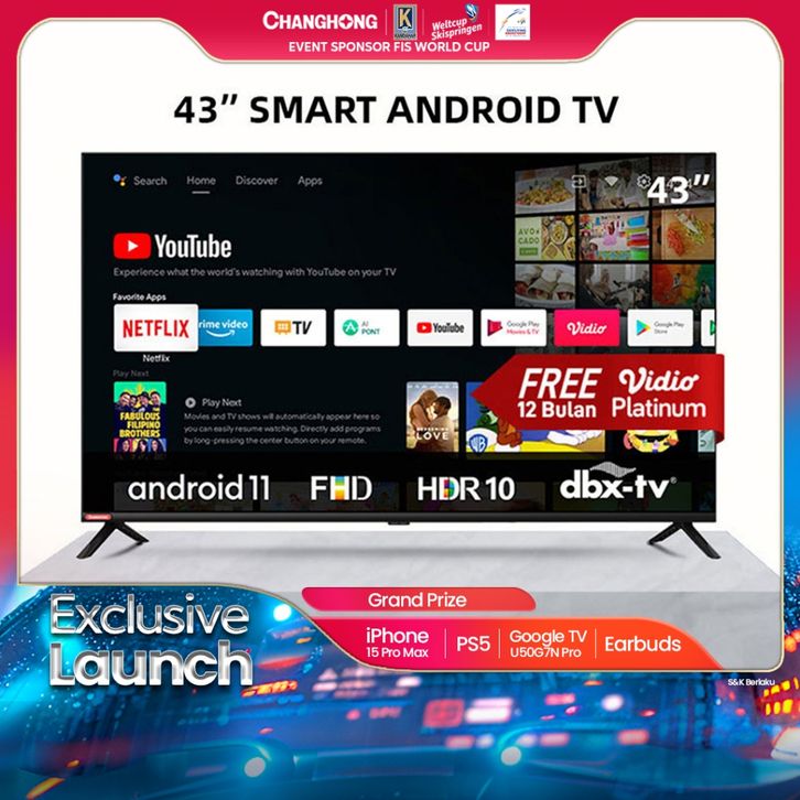 TV ANDROID CHANGHONG 43 INCH NEWEST ANDROID 11 FRAMELESS SMART TV DIGITAL LED TV FHD NETFLIX YOUTUBE GOOGLE PLAYSTORE