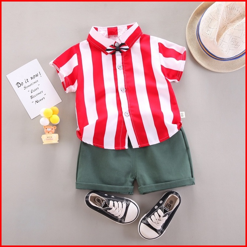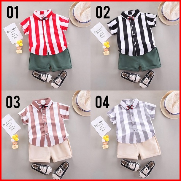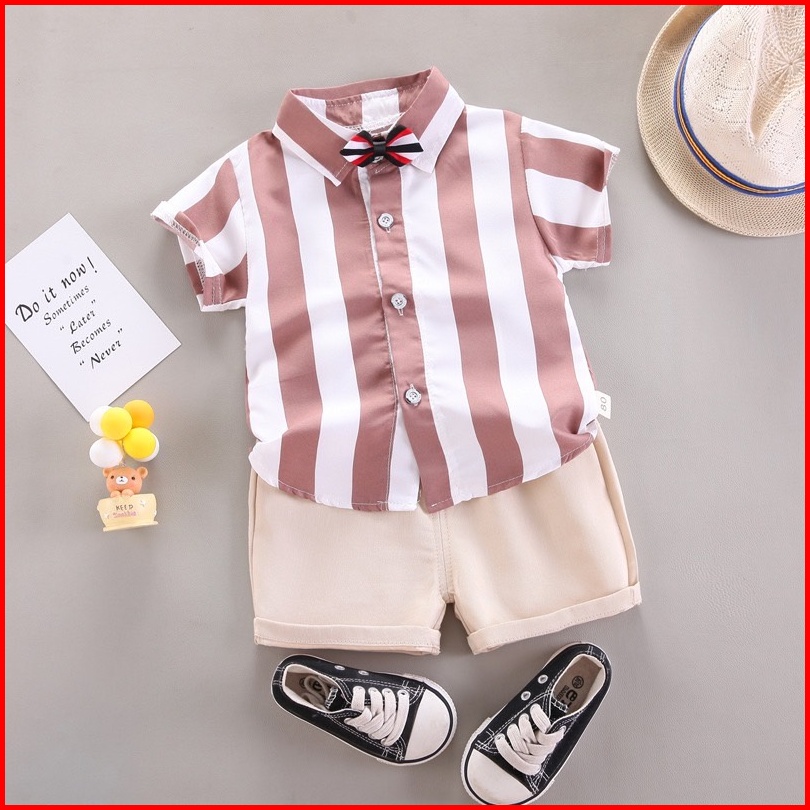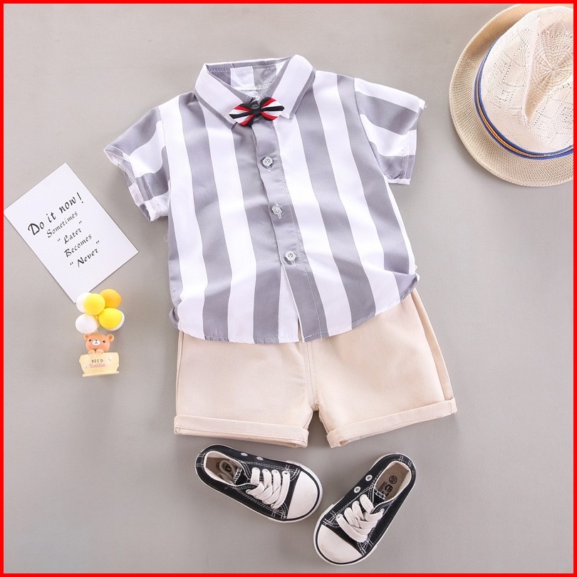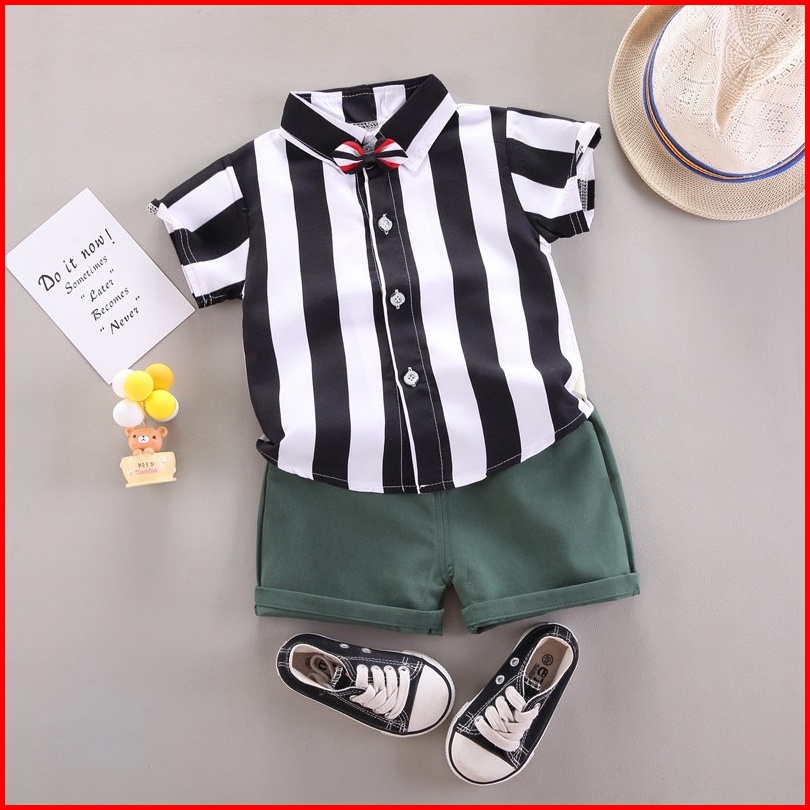 Lkm233 Setelan Bayi Pakaian Anak Lengan Pendek Garis Garis Celana Pendek 1kg 10pc Little Kuma