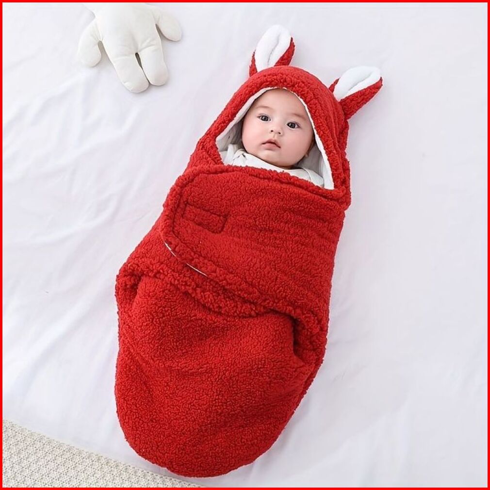 Selimut Bedong Bayi Bulu Tebal Karakter Kelinci Newborn Premium