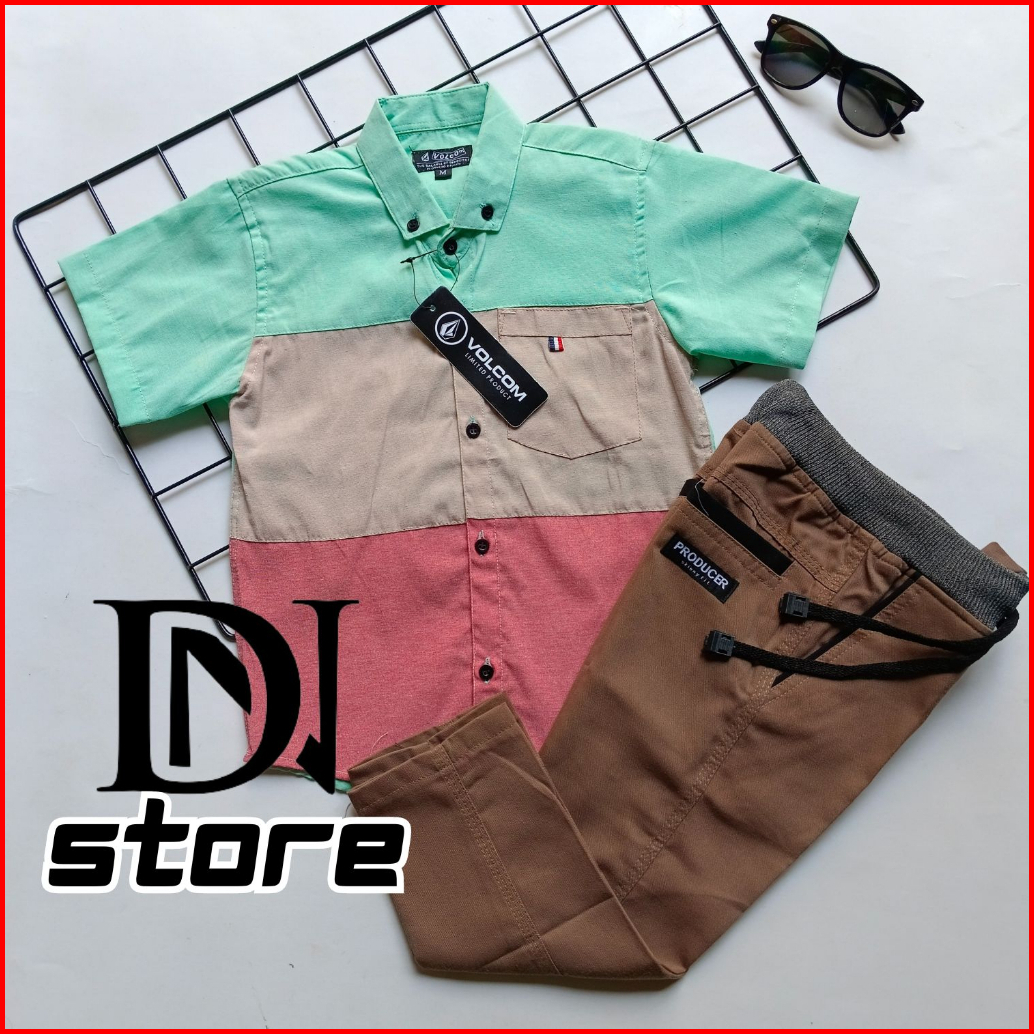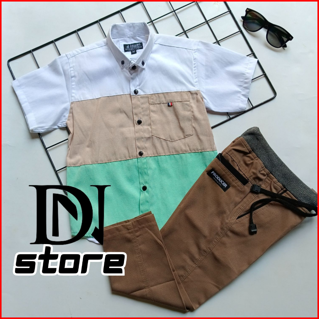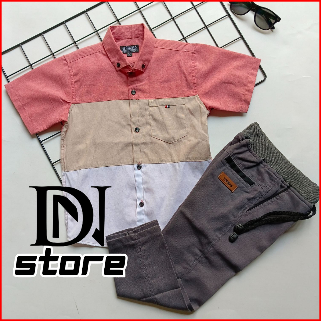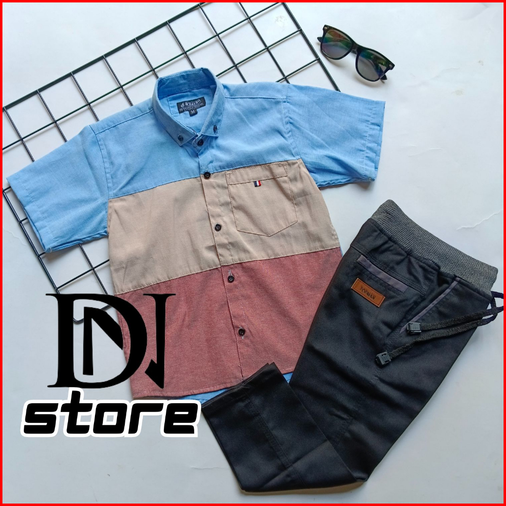Setelan Kemeja Anak Laki Laki Motif Gradasi Usia 3-10 Tahun Bahan Katun Adem Nyaman Dipakai