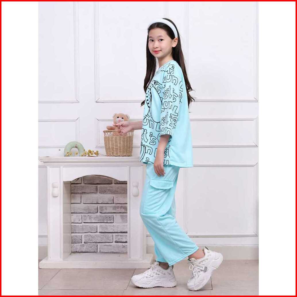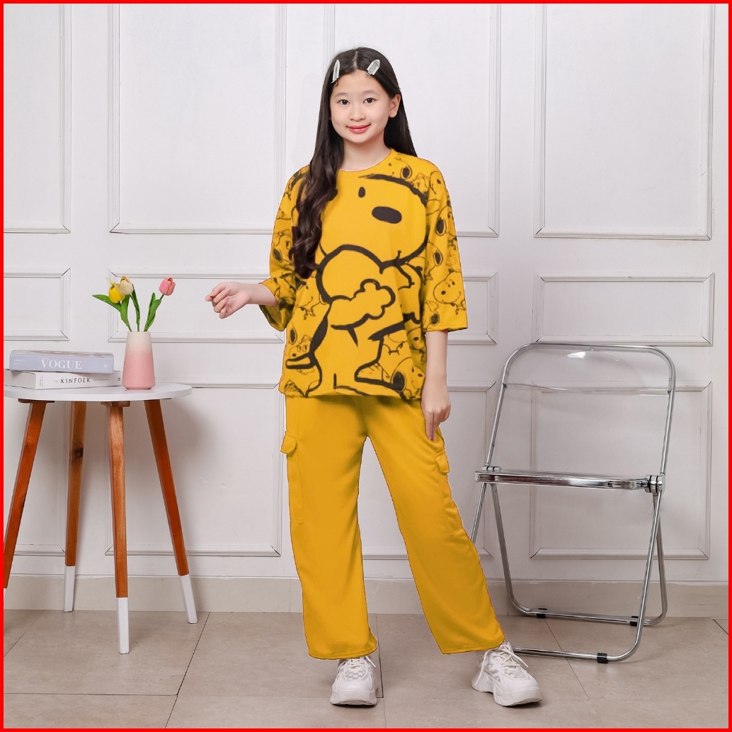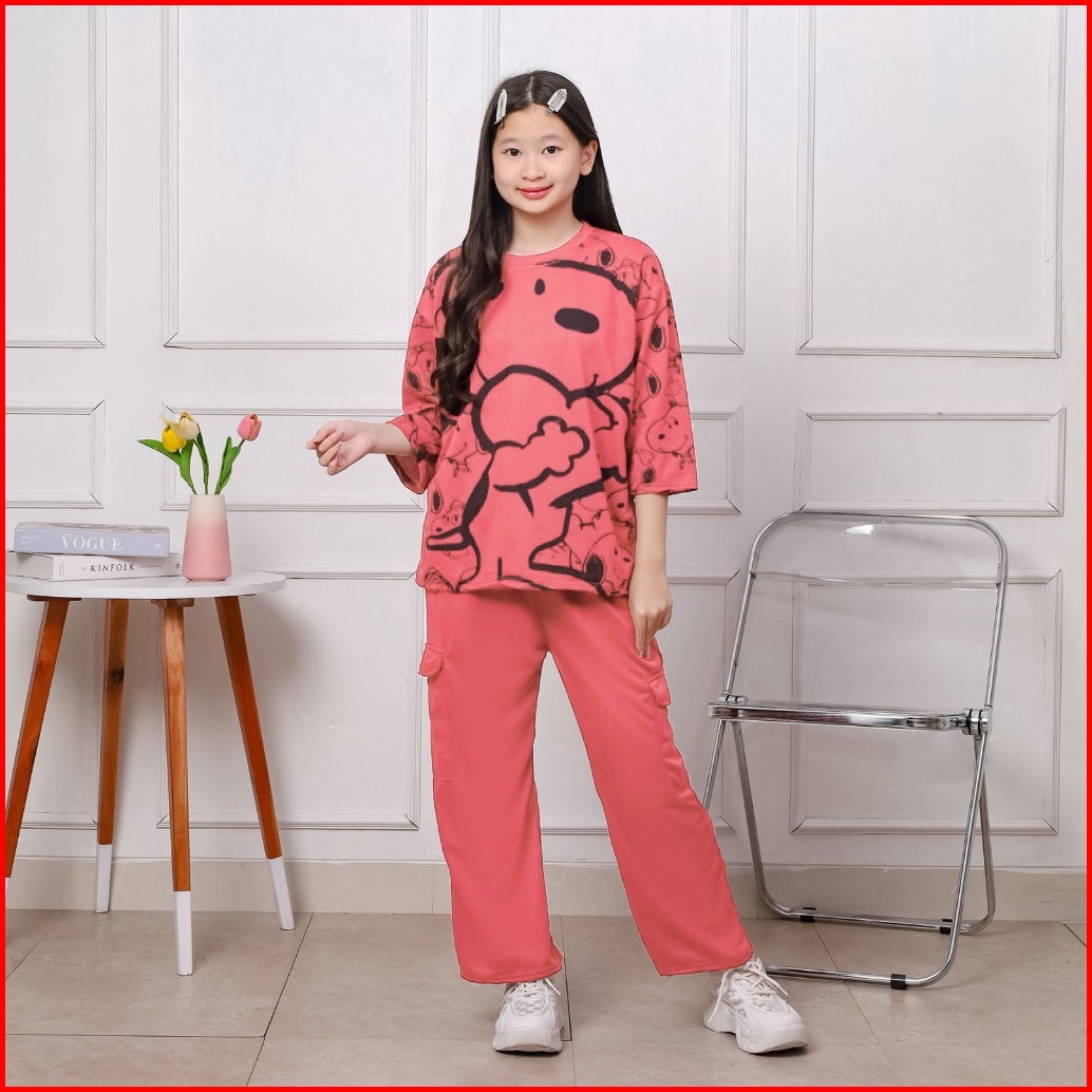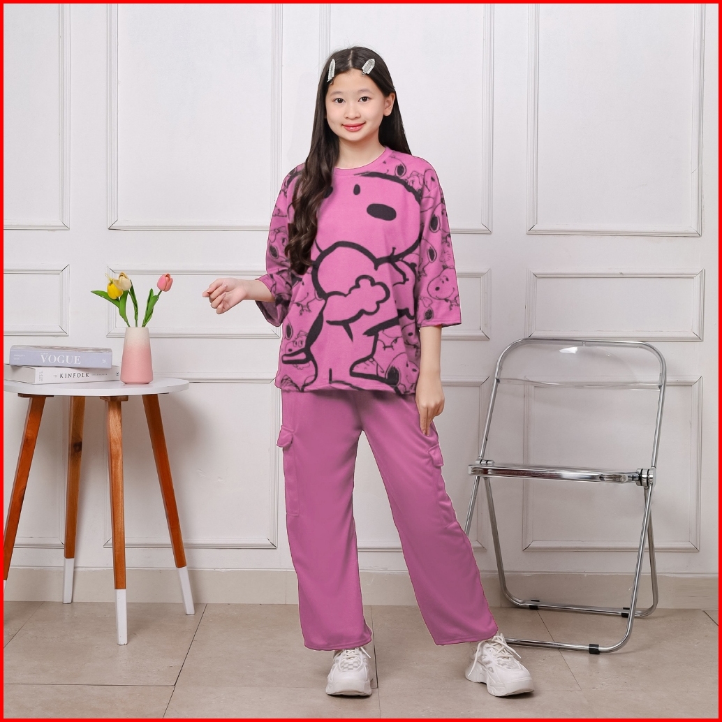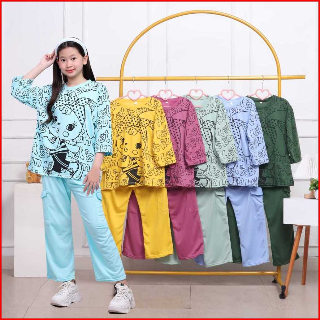Setelan Cargo Anak Perempuan Usia 4-12 Tahun Bahan Vista Terry Motif Fullprint