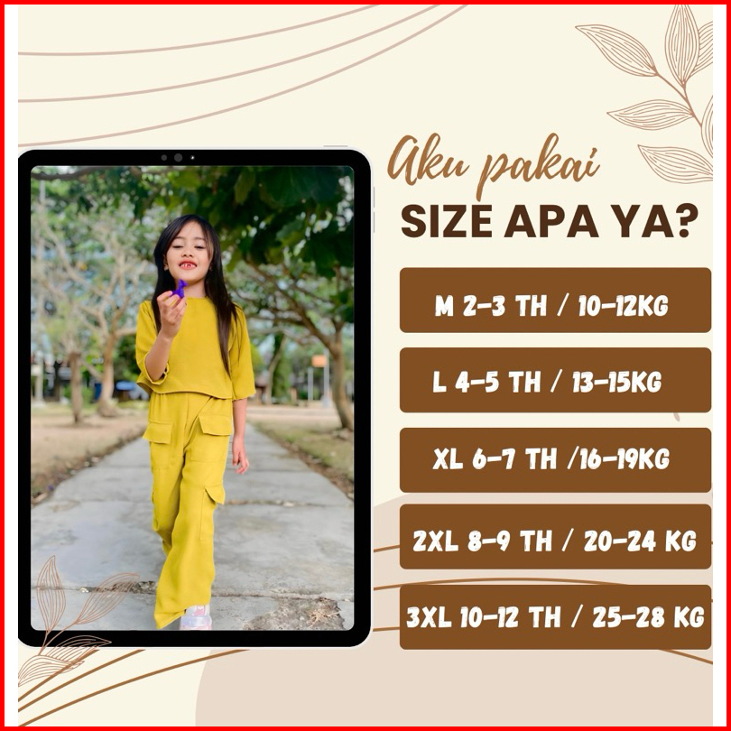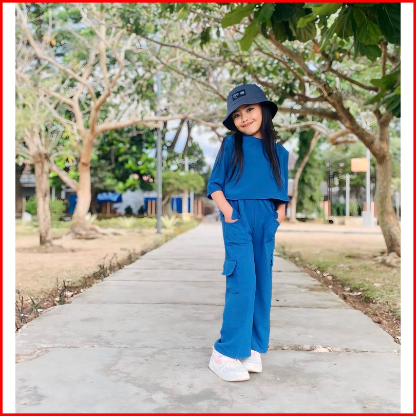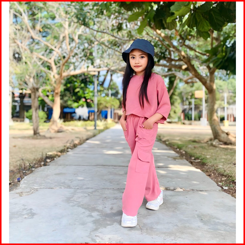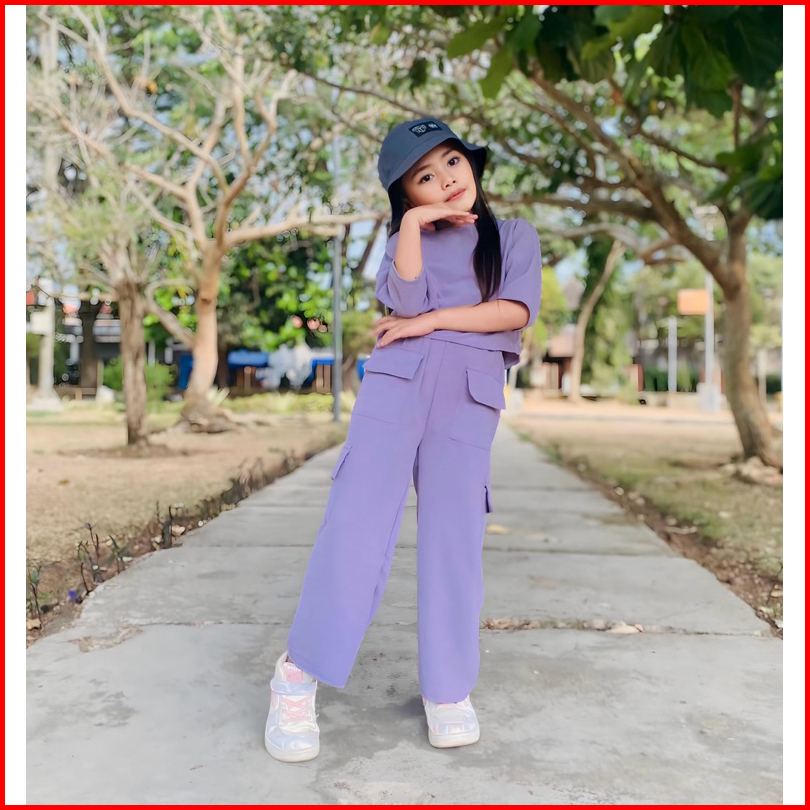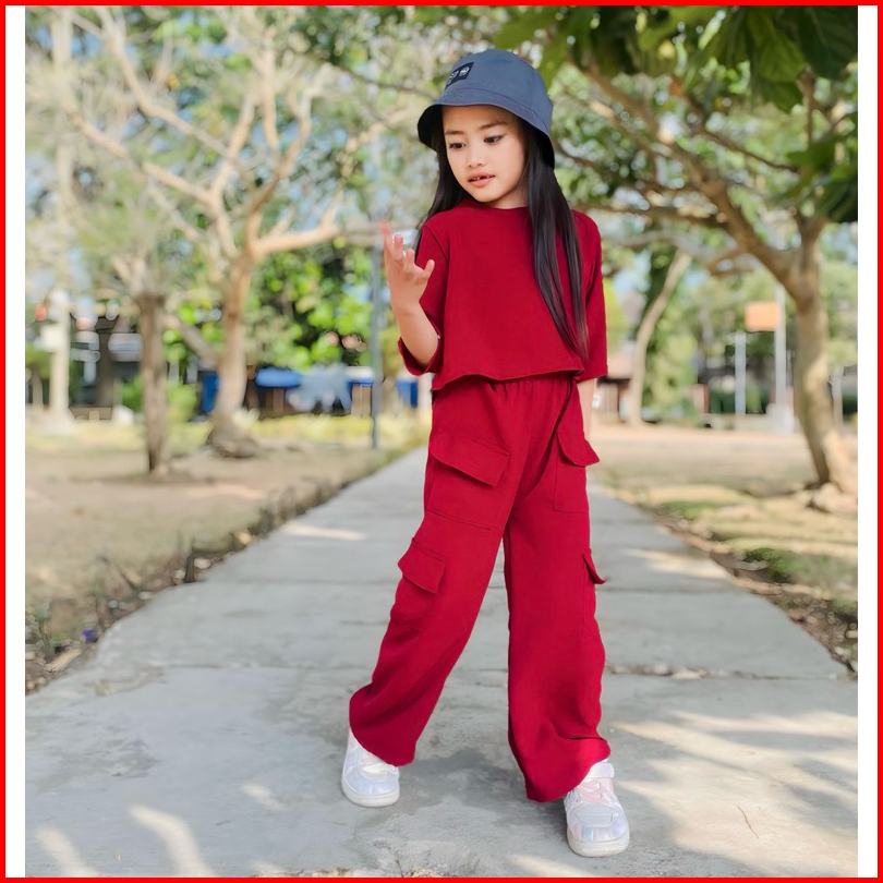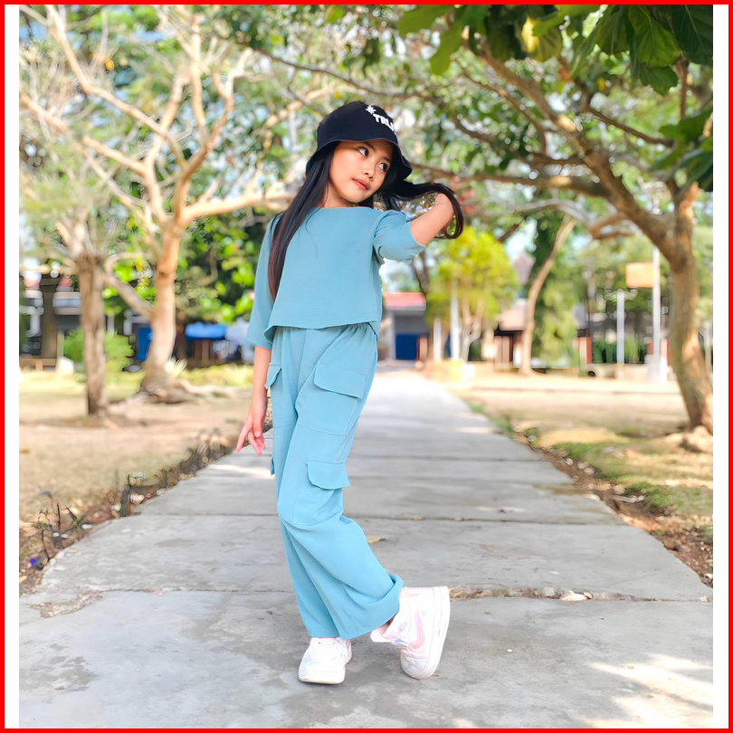 One Set Setelan Celana Cargo Crop Gempi Anak 2-12 Tahun Model Terbaru 2025