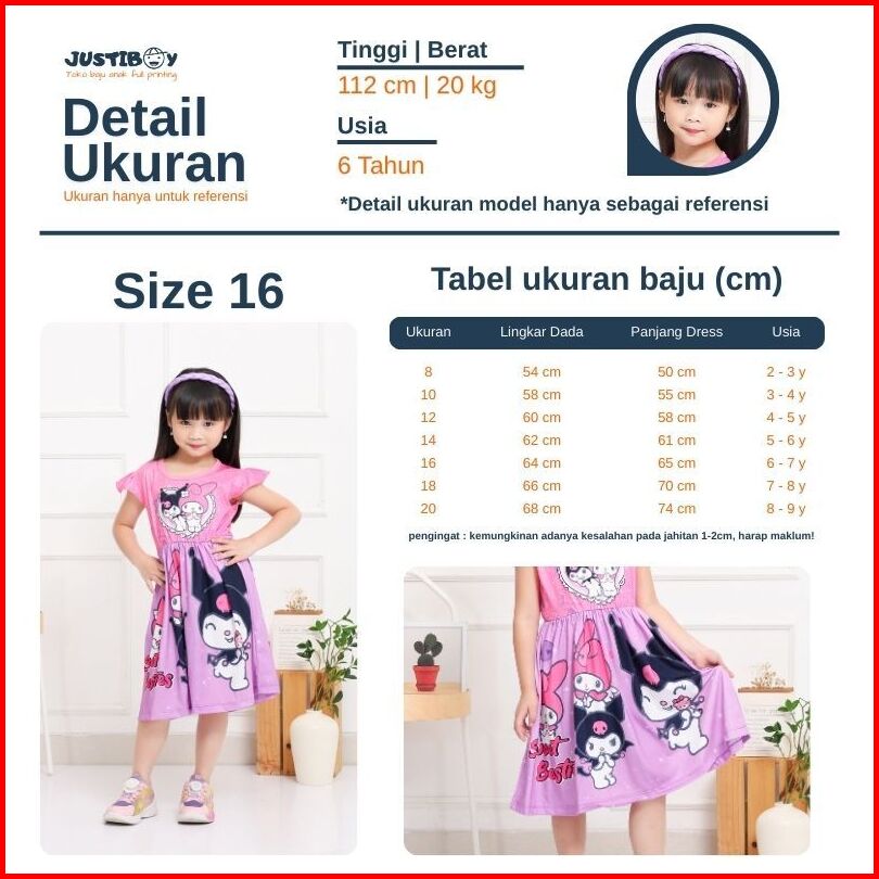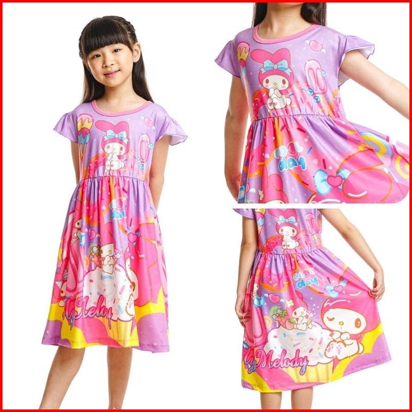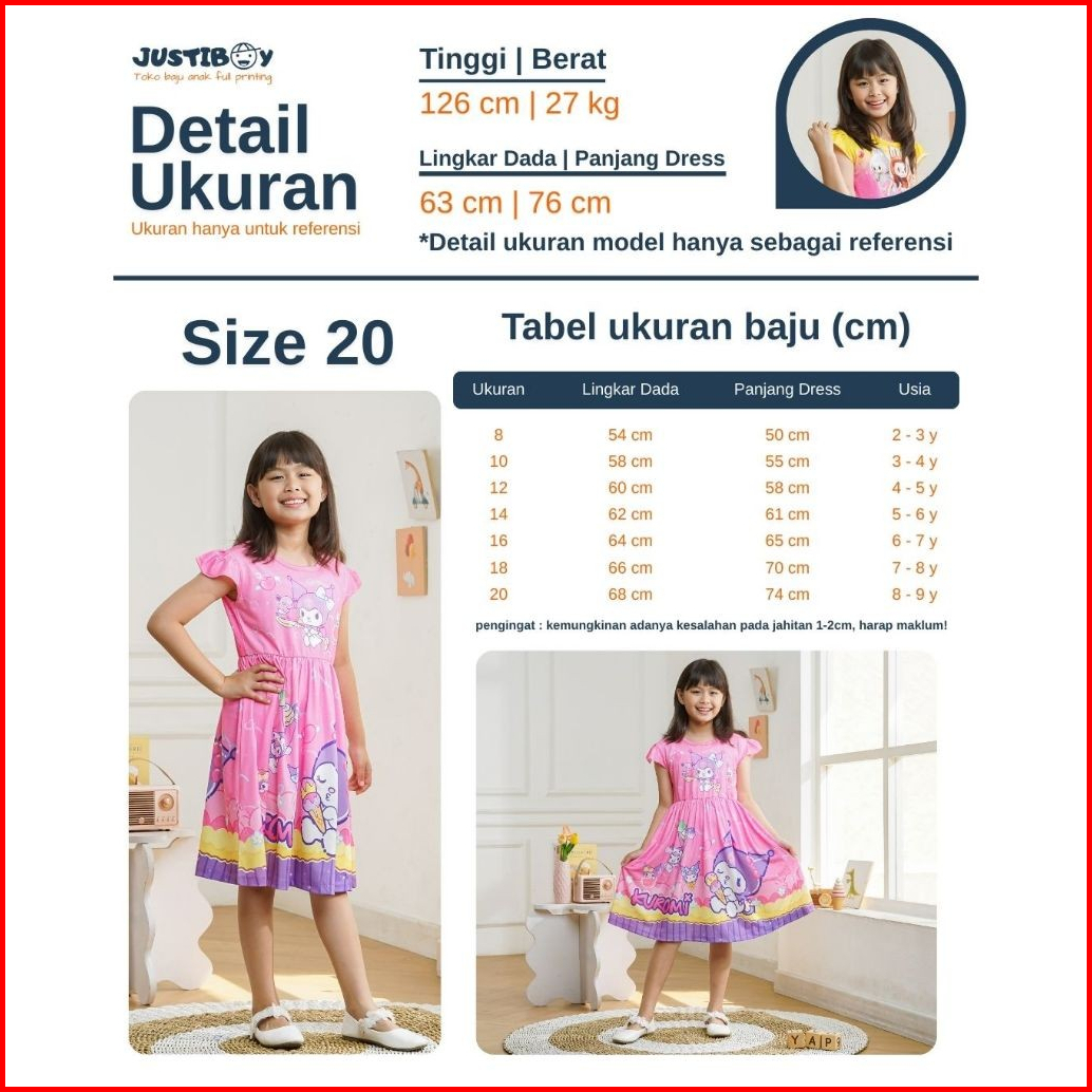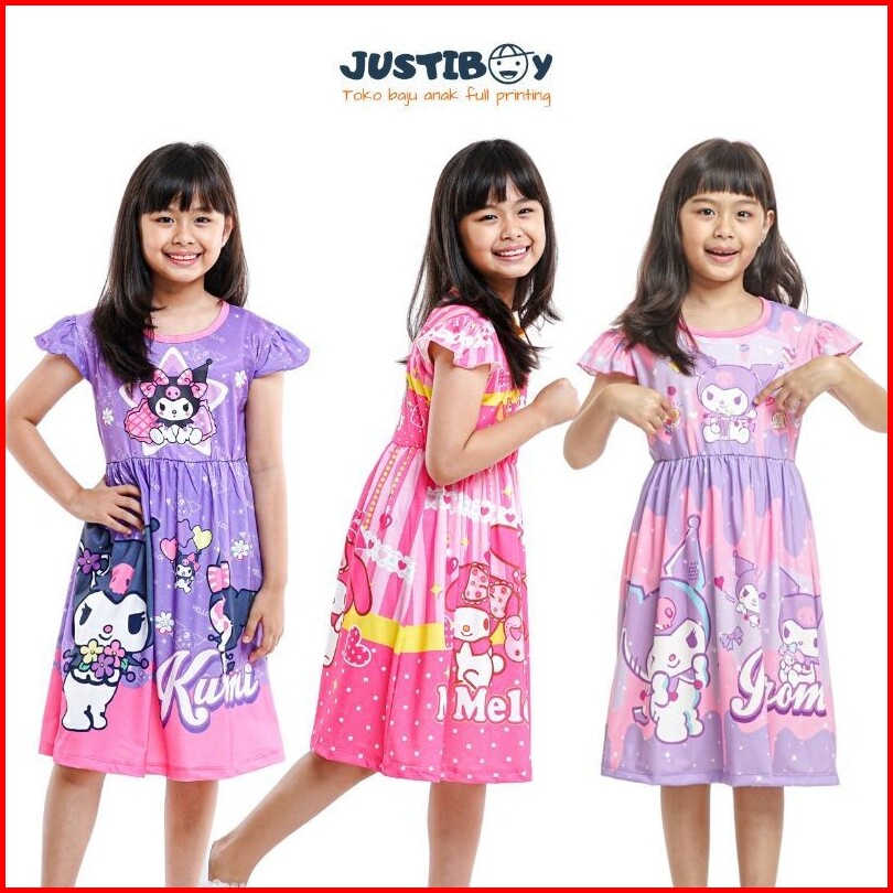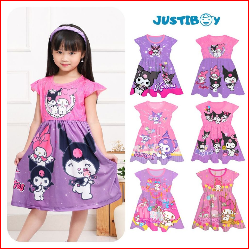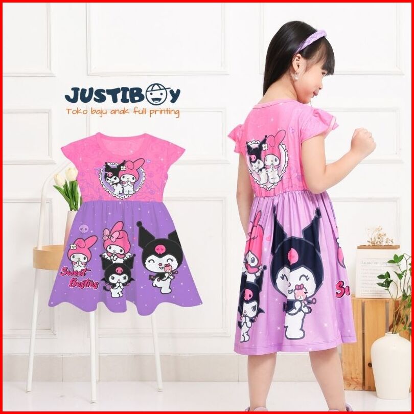 Dress Anak Perempuan Kuromi Sanrio Full Printing Umur 2 - 8 Tahun Abel