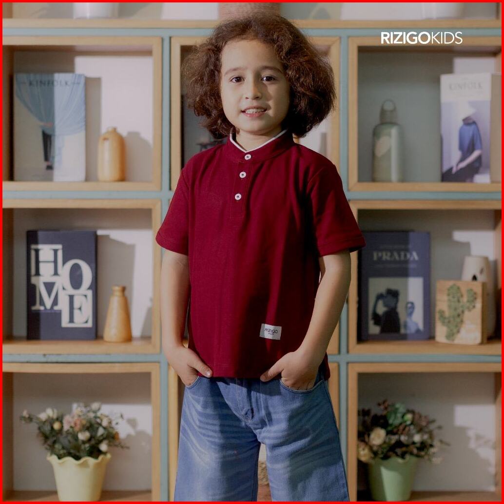 Rizigo Kids Baju Kaos Polo Koko Anak Laki-laki Lengan Pendek Katun Adem Ukuran 212 Tahun