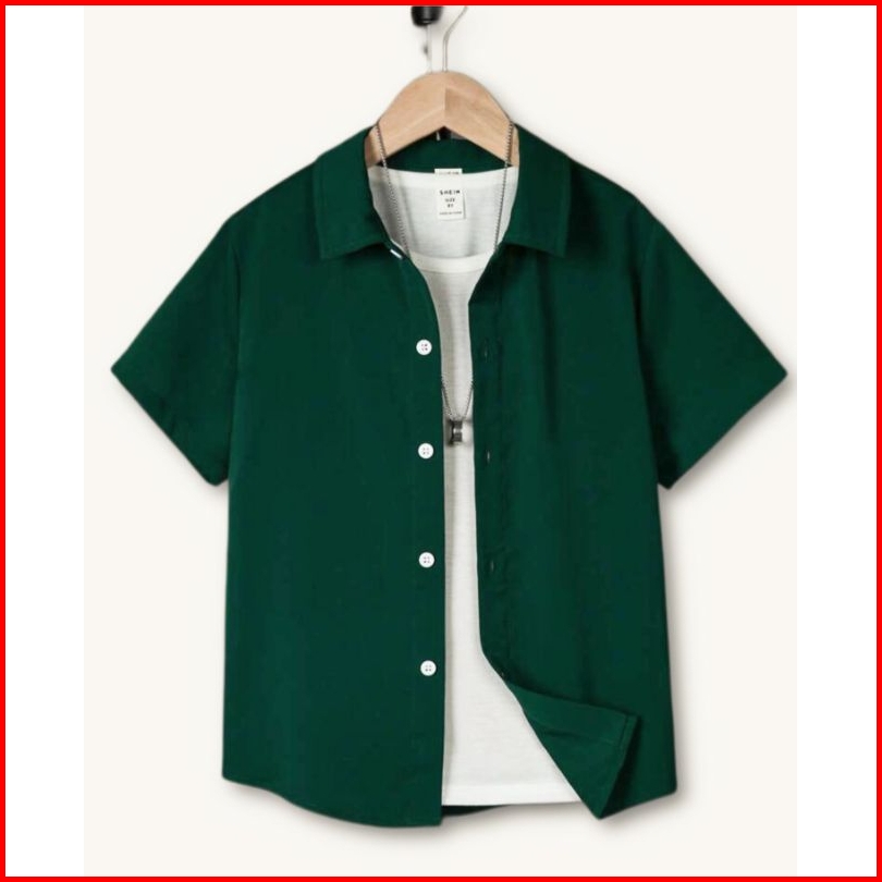 Kemeja Anak Warna Hijau Botol Kemeja Anak Laki Laki Warna Green Forest Kemeja Anak Laki Laki Lengan Pendek Hem Anak Laki