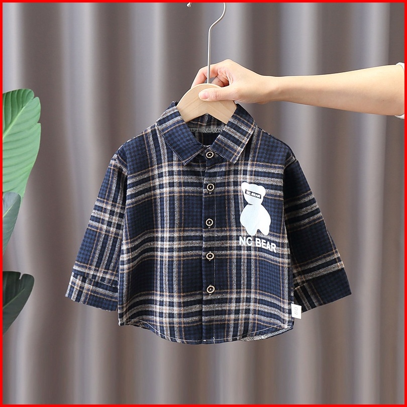 Promo 9.9 Heybaby Atasan Kemeja Bear 490 Ebv Kemeja Bayi Anak Balita Laki-laki Lengan Panjang Berkualitas