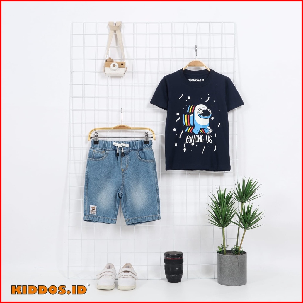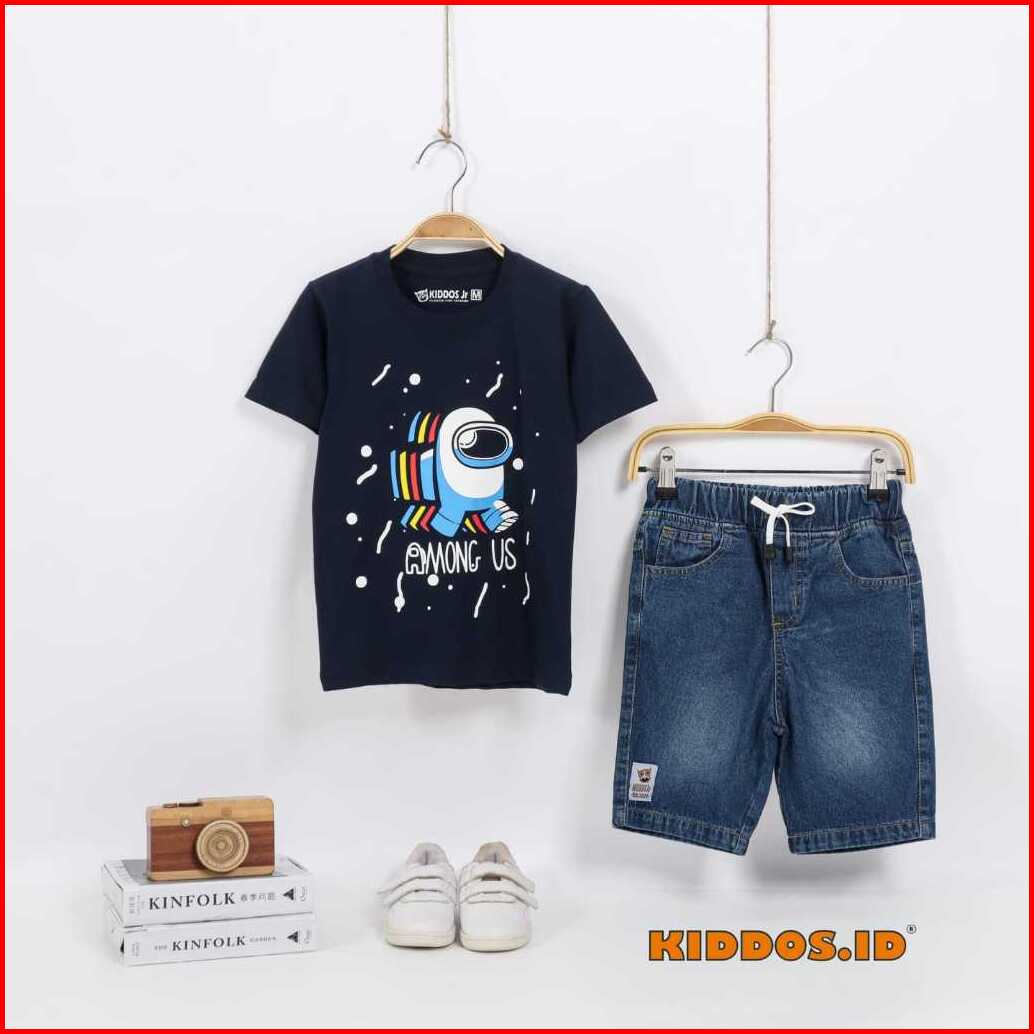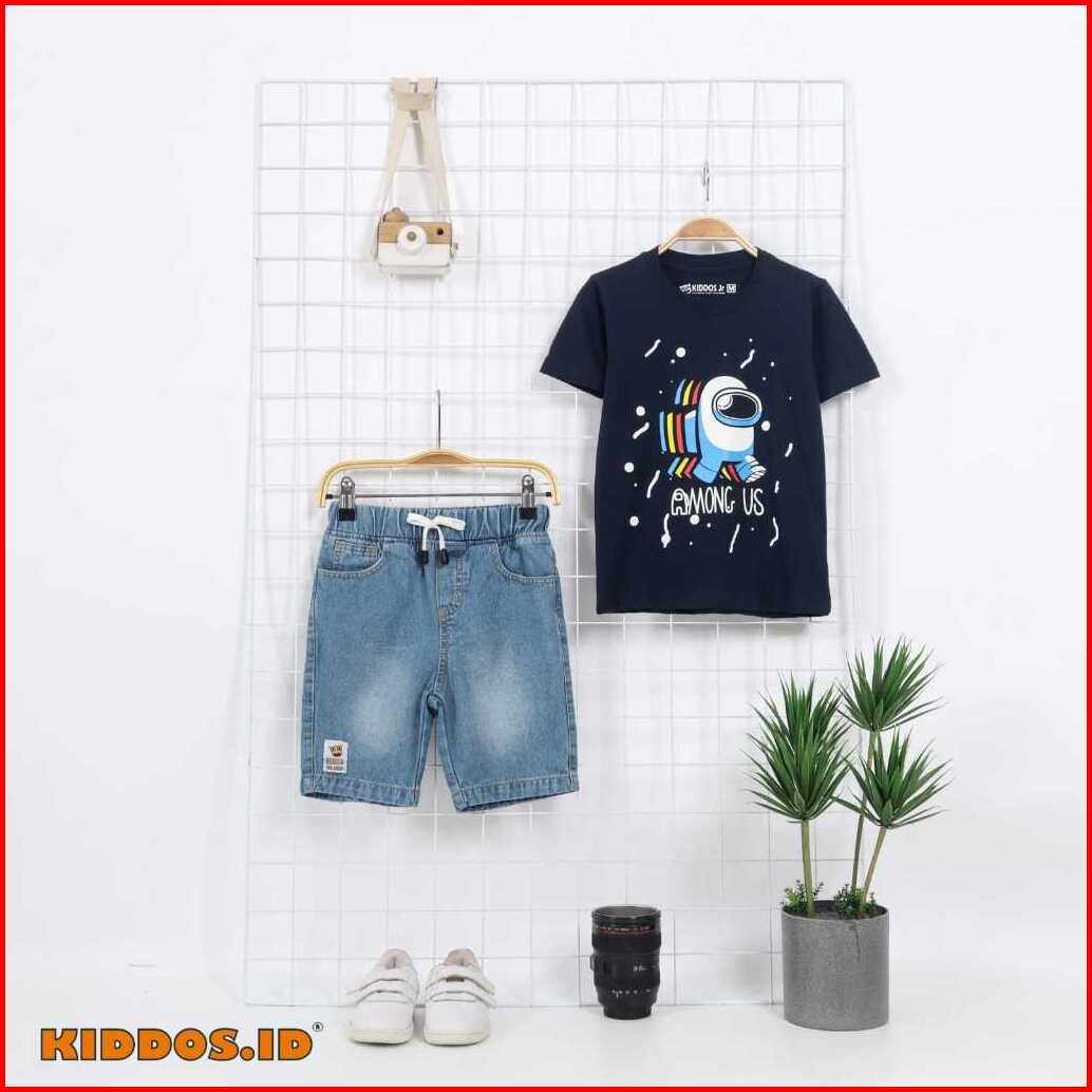 Kiddos.id Setelan Kaos Anak Celana Jeans Pendek Anak Laki Laki Am0ng