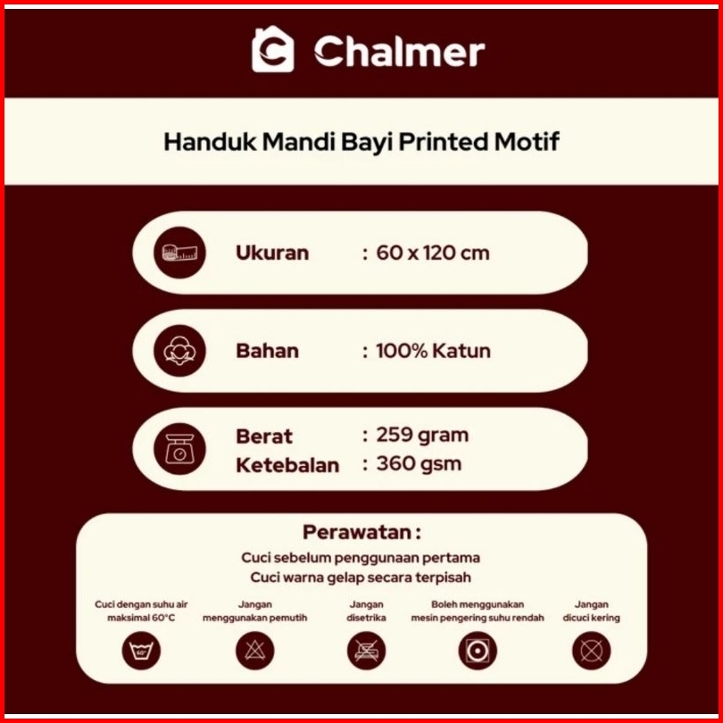 Handuk Bayi Chalmer Handuk Anak Lembut Print Karakter Ukuran 60 X 120