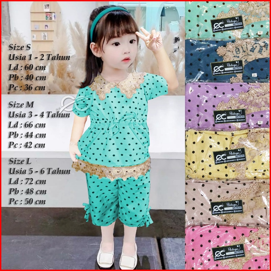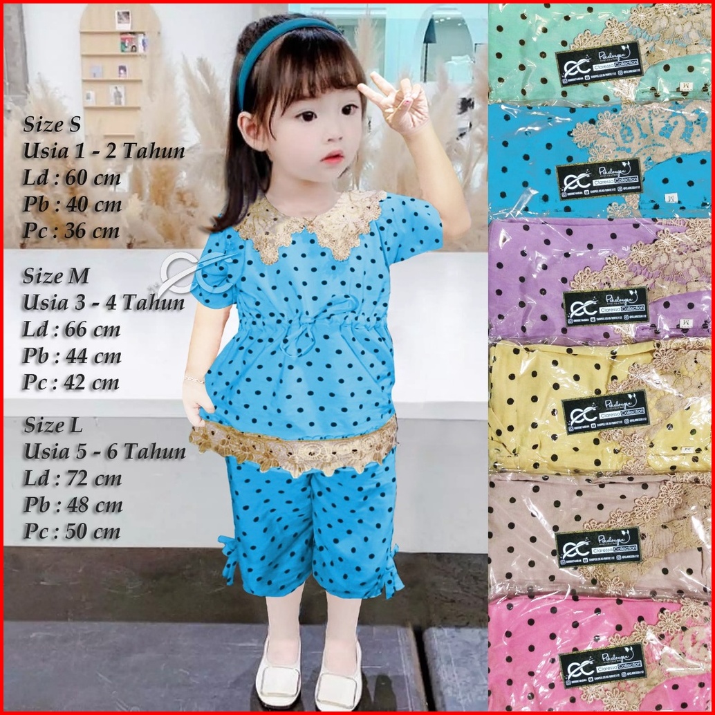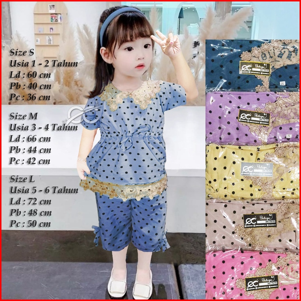 Setelan Anak Renda Brokat Motif Polkadot Soft Tali Serut 1 - 13 Tahun One Set 7 8 Claressa Collection