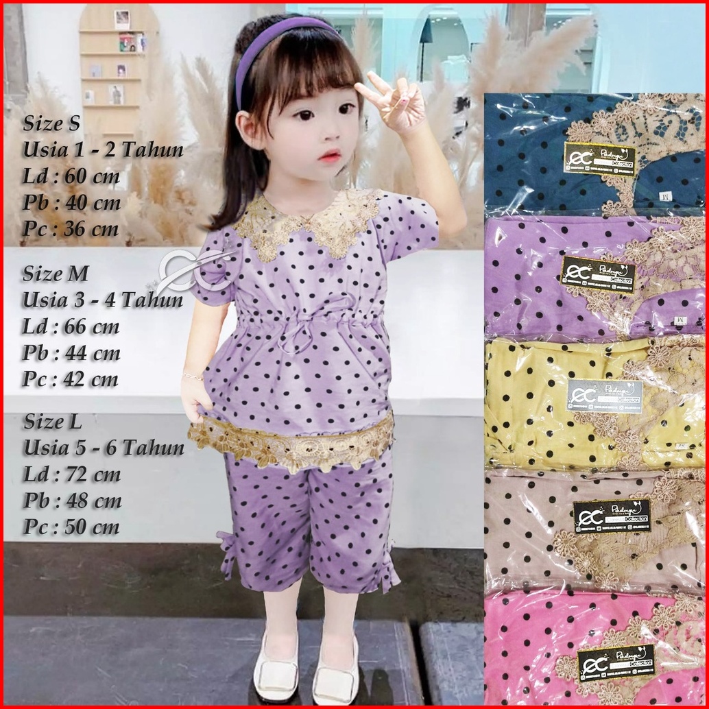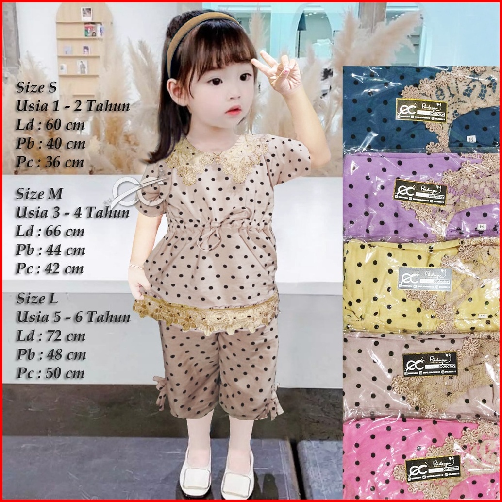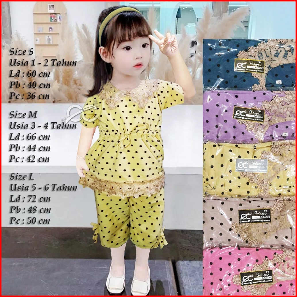 Setelan Anak Renda Brokat Motif Polkadot Soft Tali Serut 1 - 13 Tahun One Set 7 8 Claressa Collection