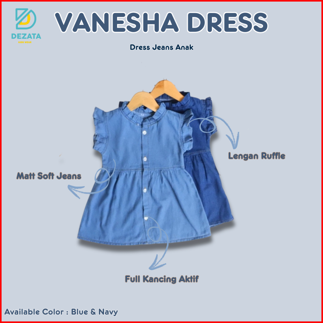 Vanesha Dress Dress Jeans Anak 1-5 Tahun Dress Anak Perempuan Dress Jeans Anak Baju Anak