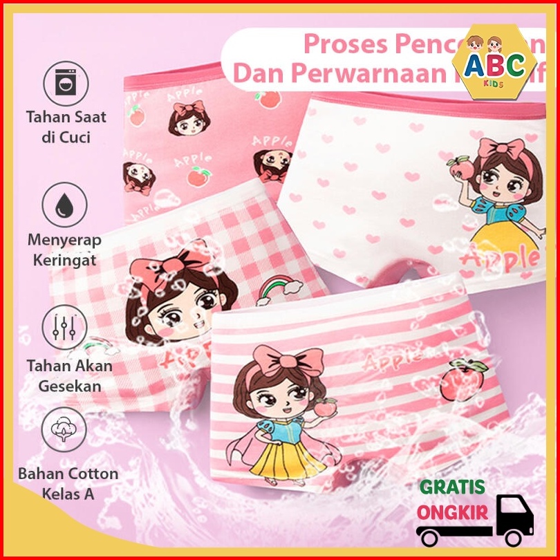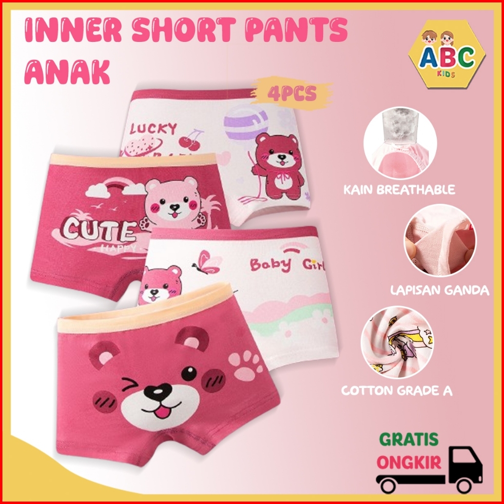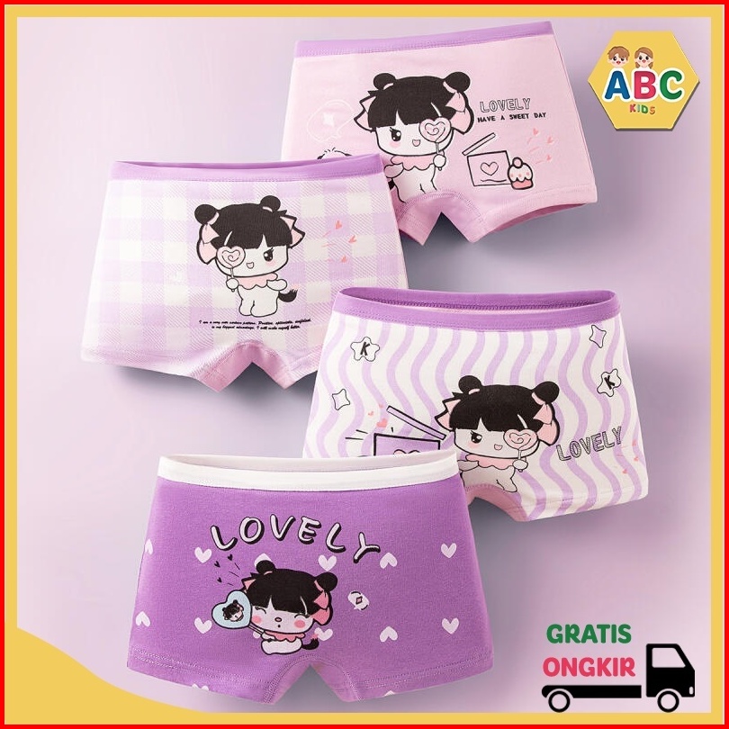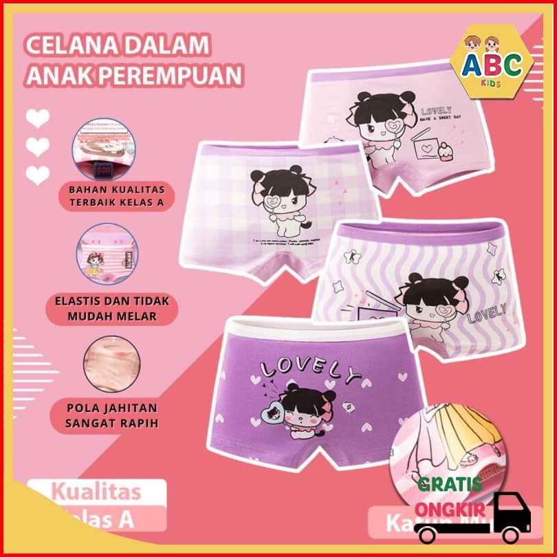 Abc Kids 1 Set Isi 4 Pcs Celana Boxer Anak Perempuan Celana Dalam Katun Murni Perempuan 10kg-37kg
