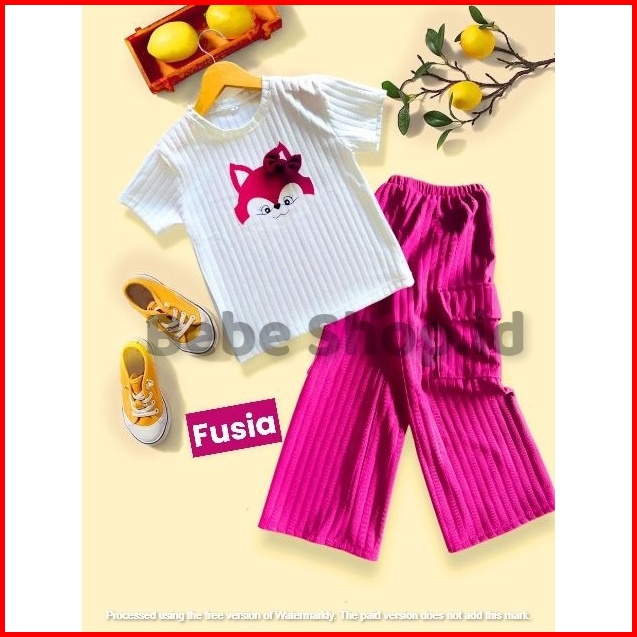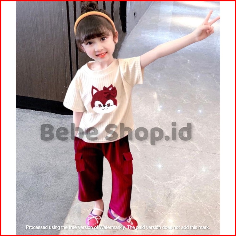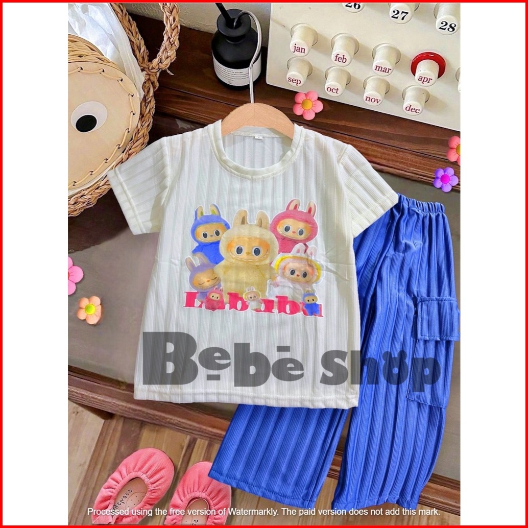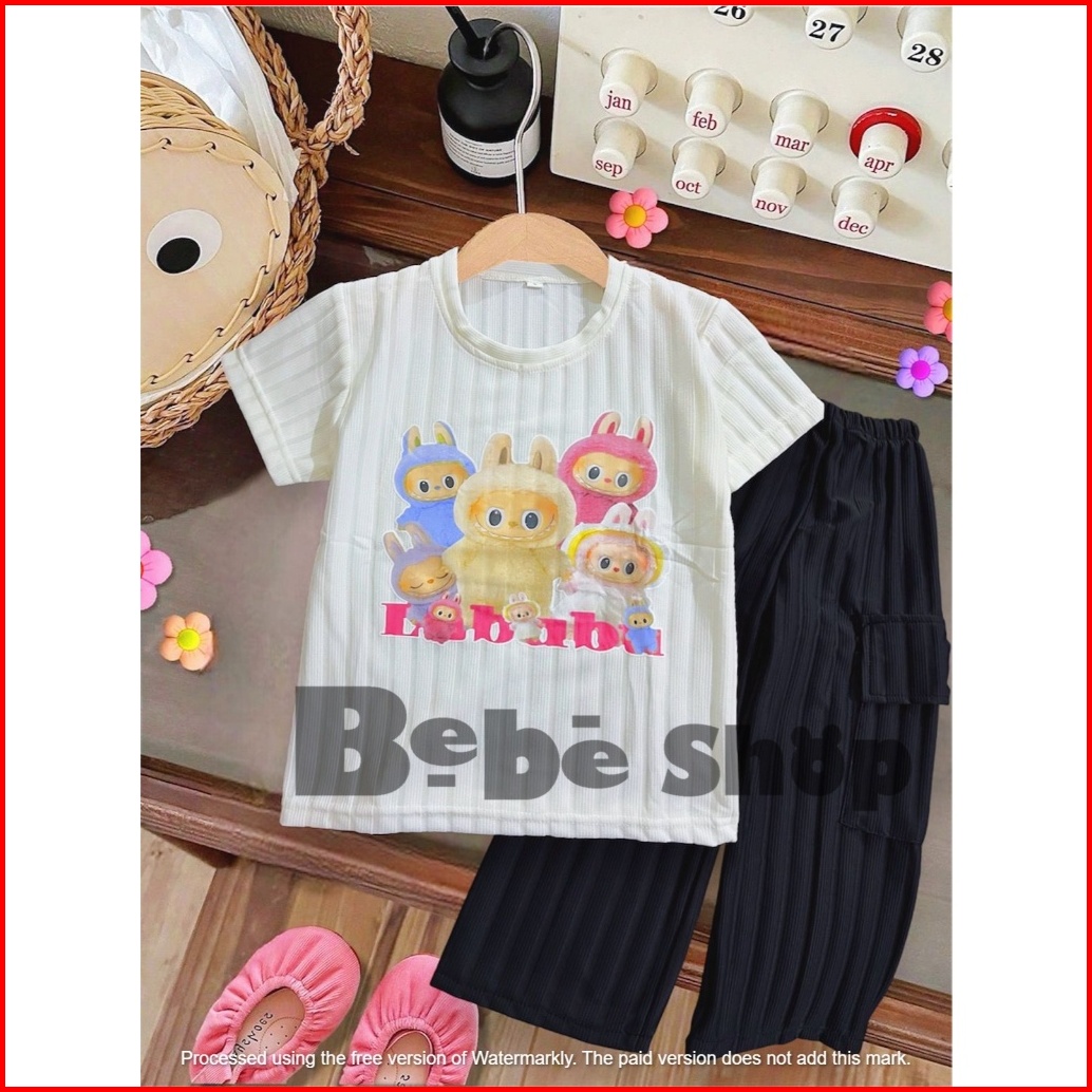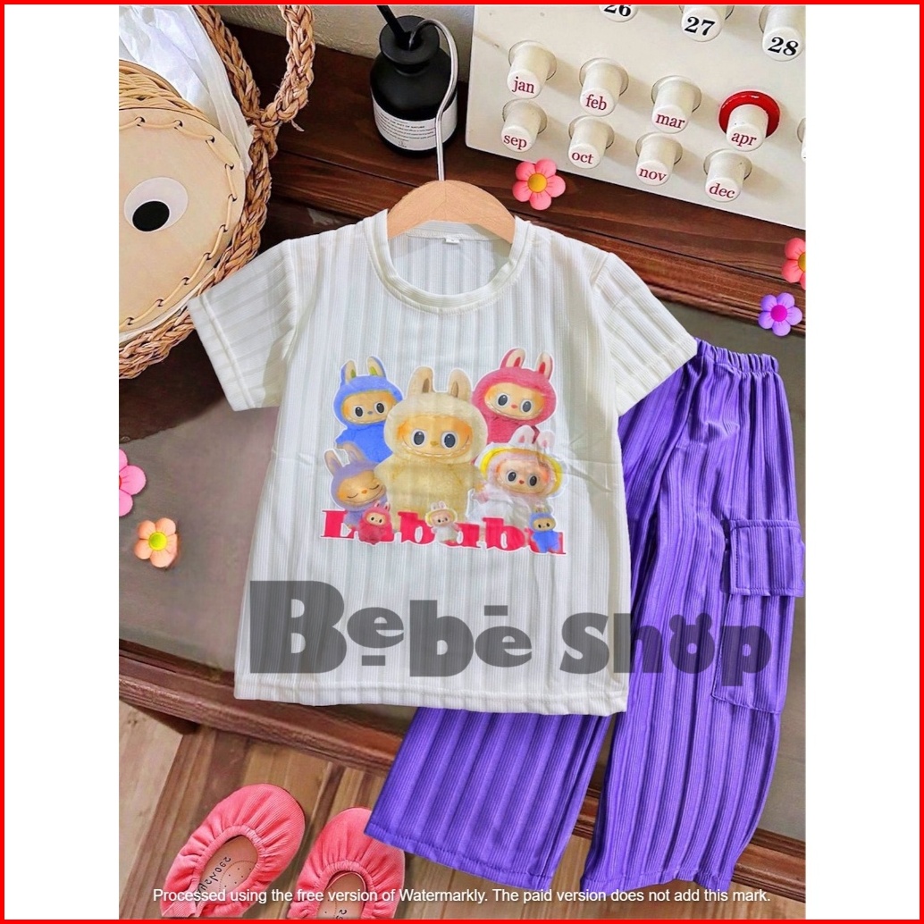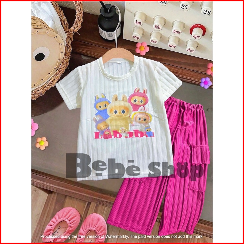 Setelan Cargo Anak Perempuan Motif Kartun Lucu Usia 1 Sampai 10 Tahun Bahan Knit