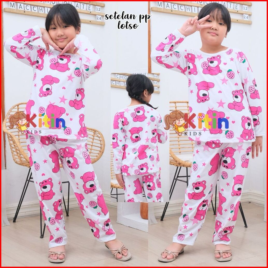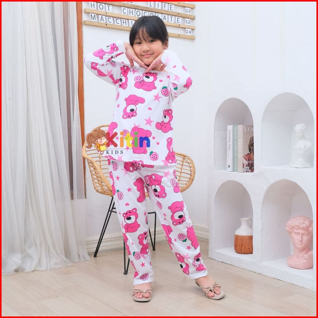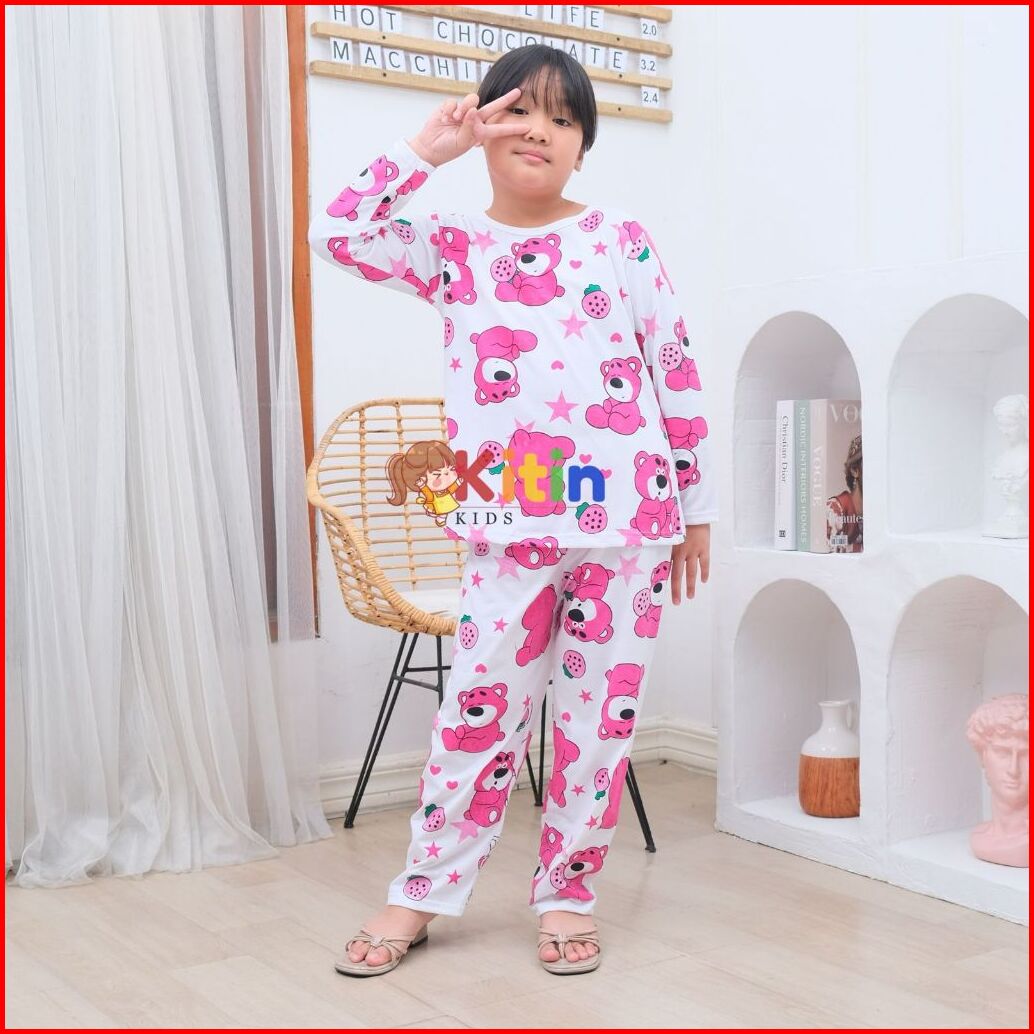 Kitin - Setelan Baju Tidur Dan Piyama Anak Cewek Perempuan Premium Katun 4-12 Tahun Motif Full Printing Lotso Putih