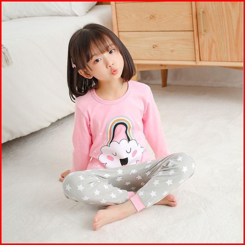 Baju Tidur Anak Pakaian Anak Laki-laki Pakaian Anak Perempuan Lengan Panjang Celana Panjang Bahan Tc Untuk Anak 1-9 Tahu