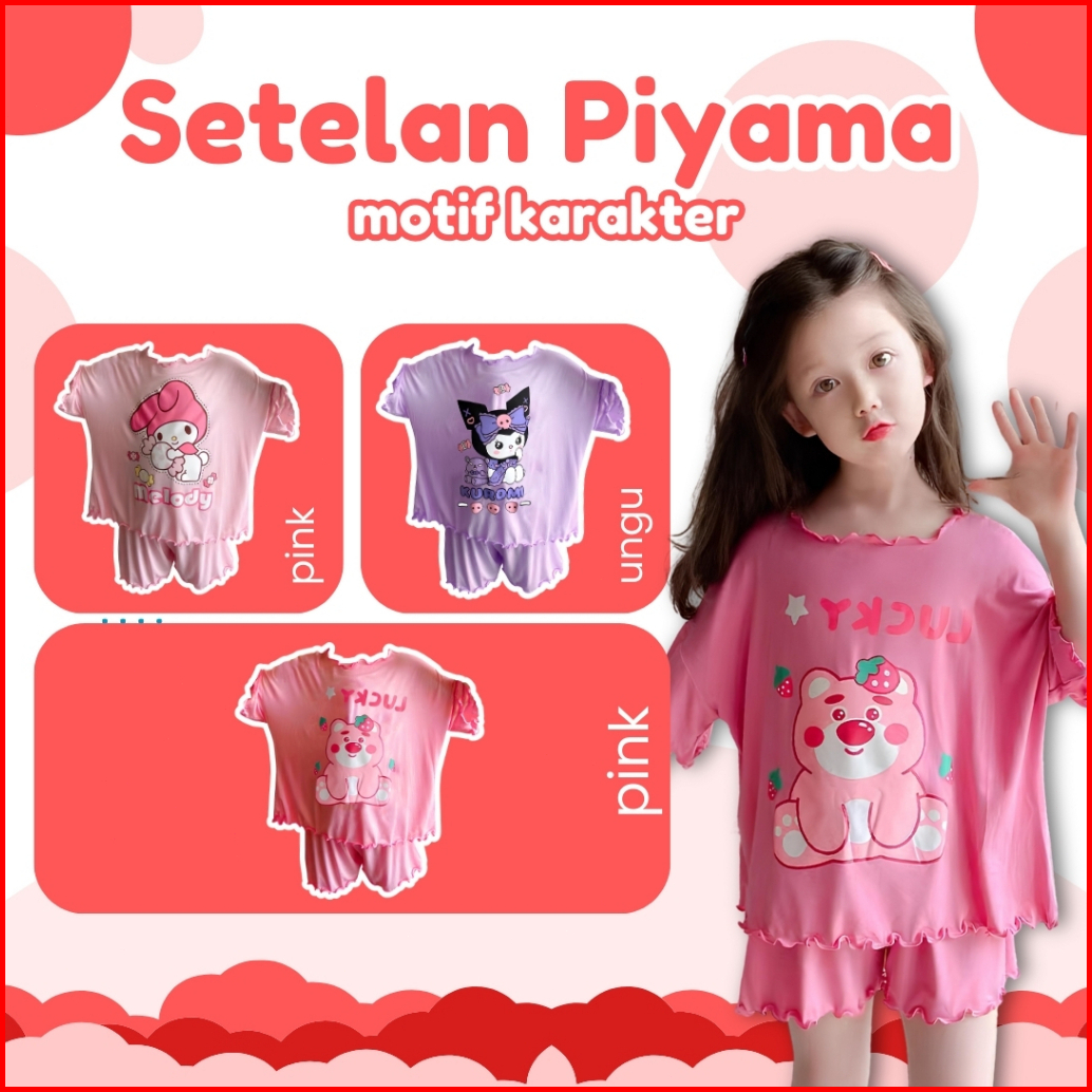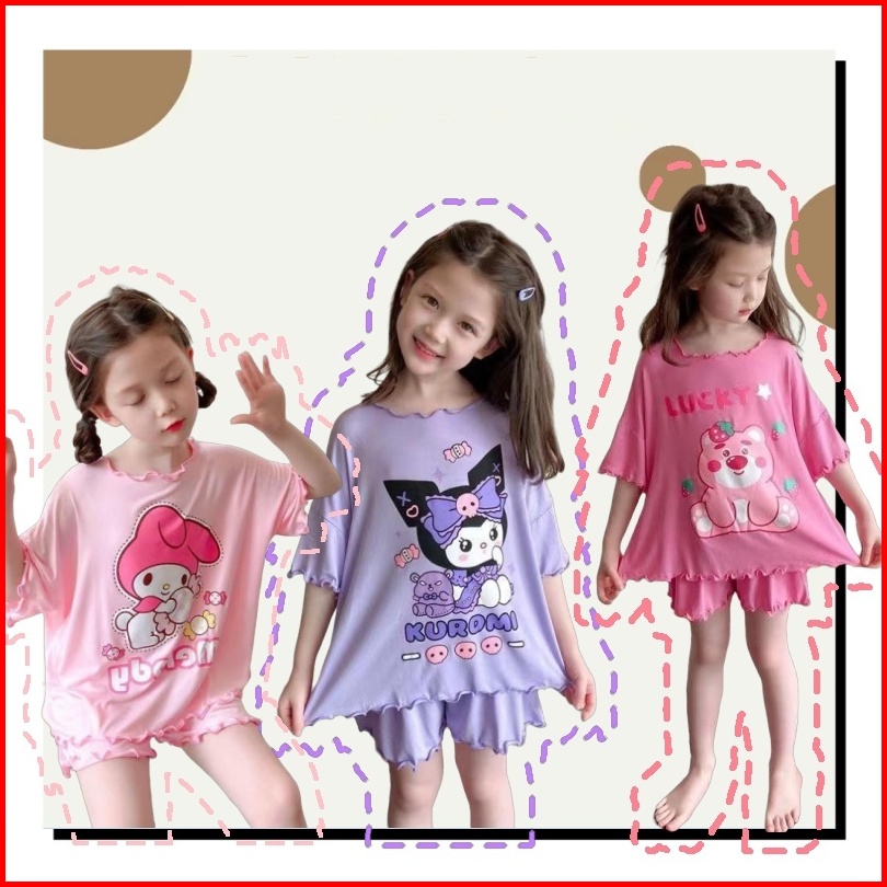 Little Baby Bear 1-9 Tahun Setelan Piyama Anak Perempuan Rumah Kasual Pola Kartun Short Sleeve Pajamas Pakaian Musim Pan