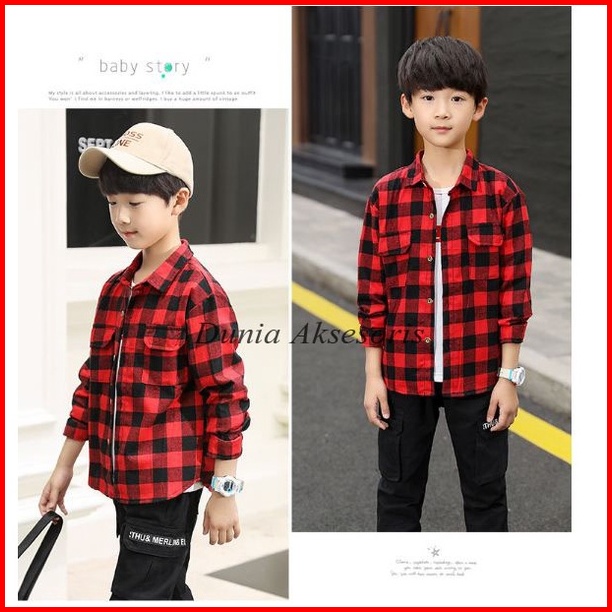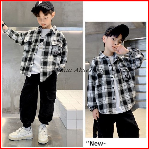 Terpopuler Kemeja Anak Laki Laki Lengan Panjang Motif Kotak Ala Korea