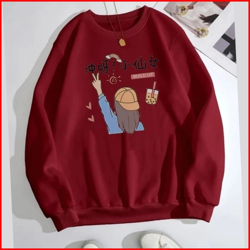 Jaket Sweater Anak Perempuan Bobba Build Up 5-15 Thn Hoodie Anak Perempuan 5-15thn Crewneck