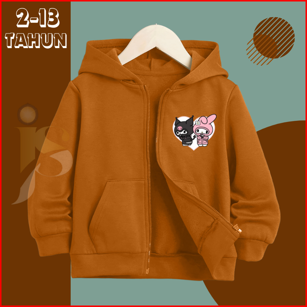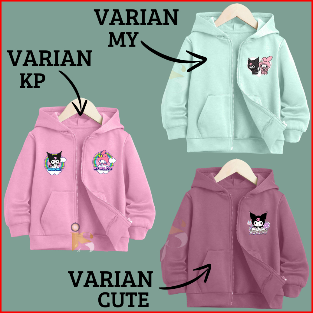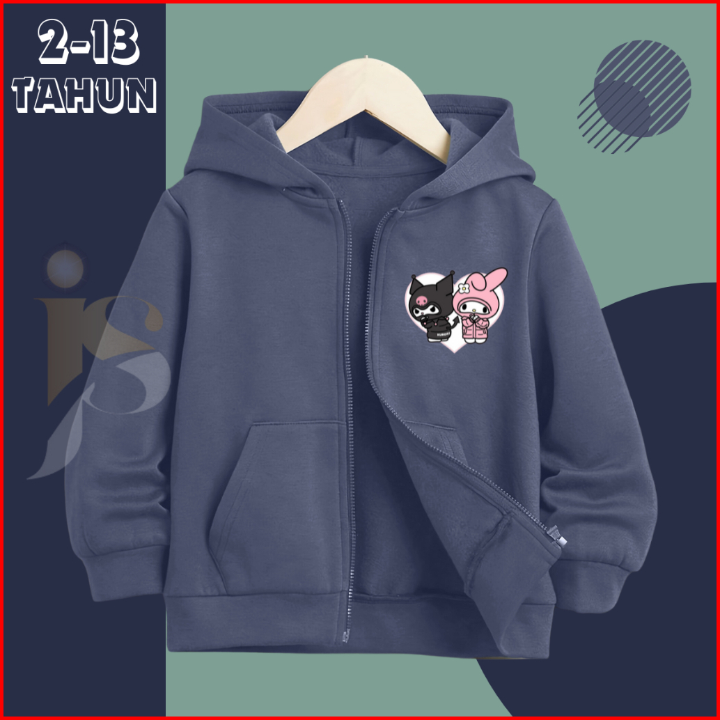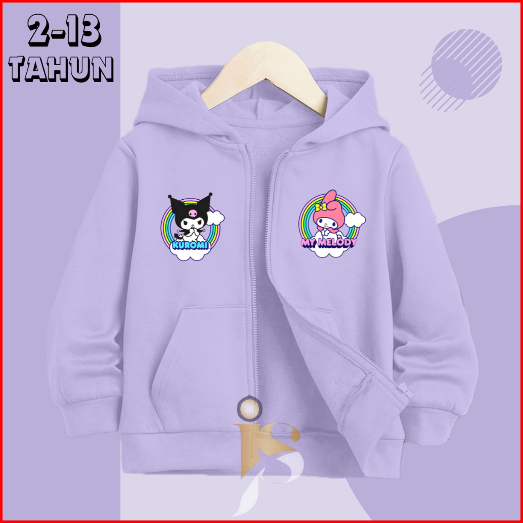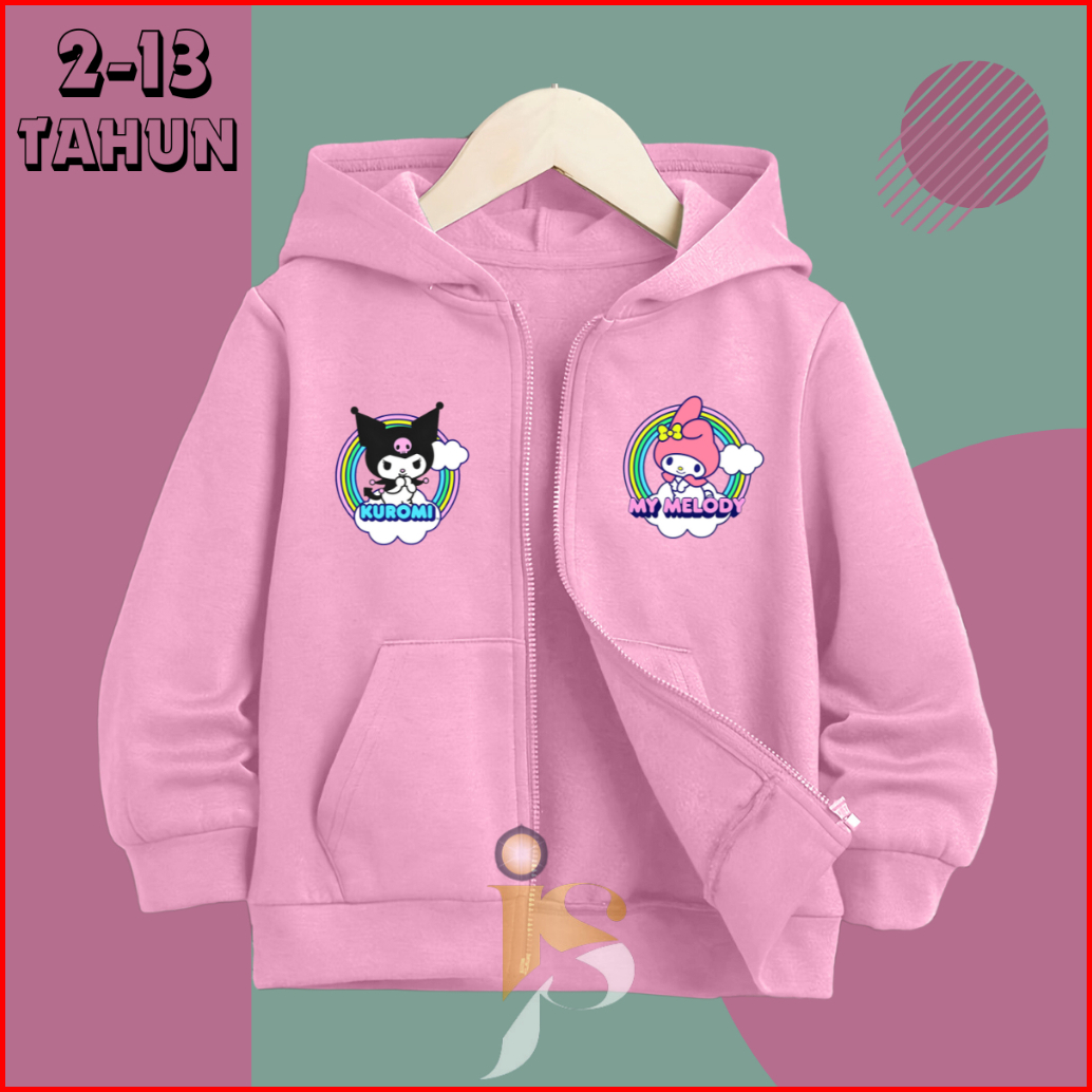 Jaket Hoodie Zipper Anak Perempuan Karakter Sanrio Kuromi My Melody Usia 2 -13 Tahun
