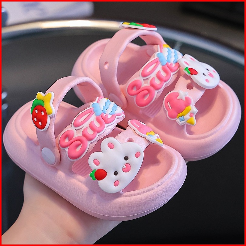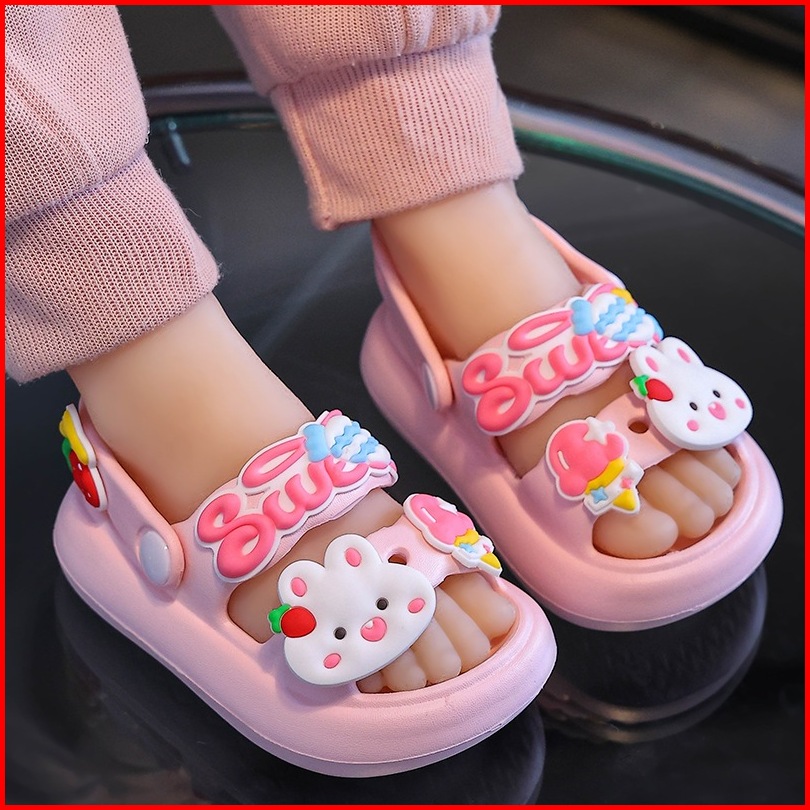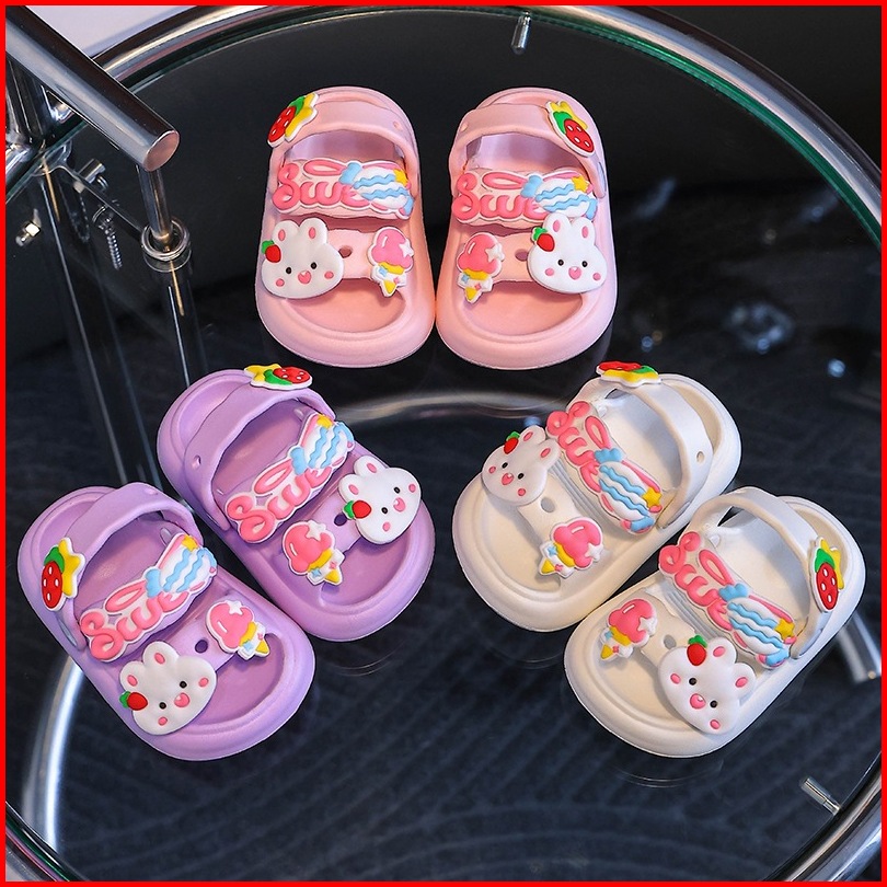 Promo 9.9 Import Okaybaby B376 Sandal Slop Rabbit Anak Perempuan Kekinian Sendal Casual Lucu Anak Cewek Bahan Karet Jell