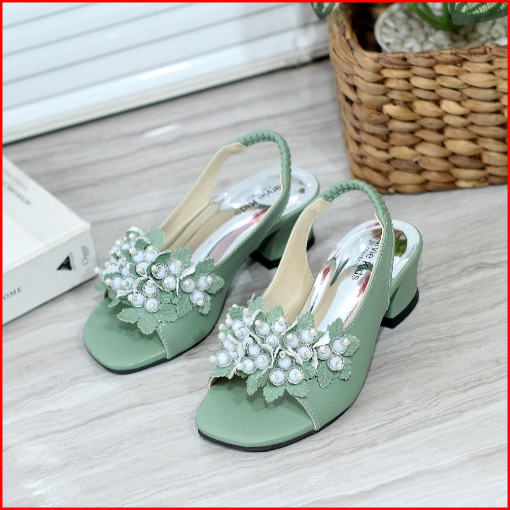 Sepatu Sandal Pesta Anak Perempuan Hak Tahu Motif Mute Sampan Hr 030