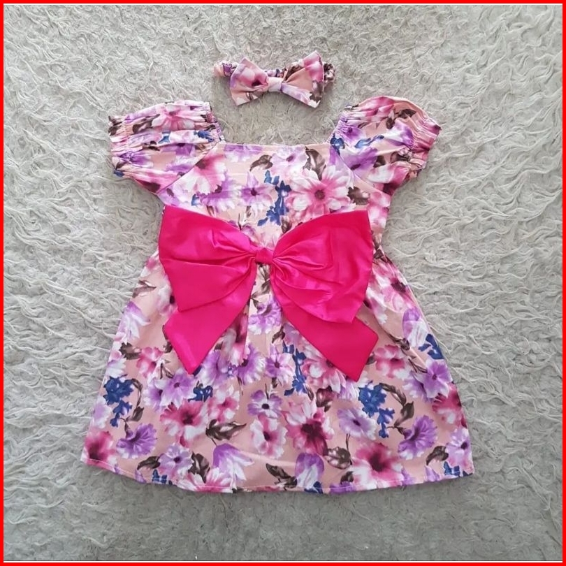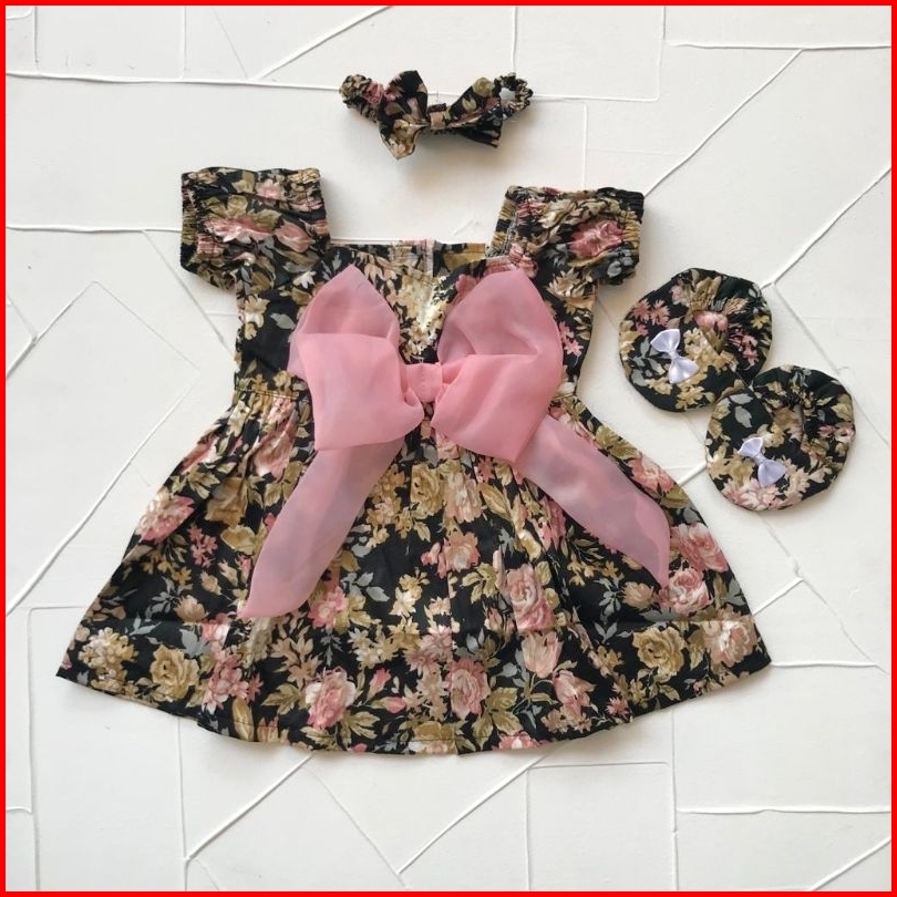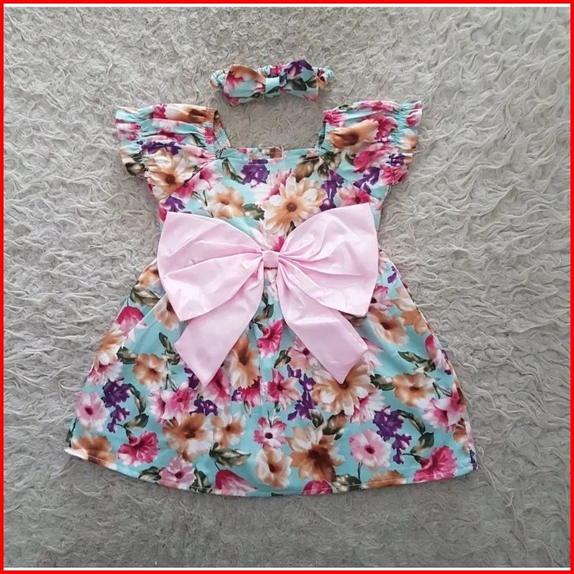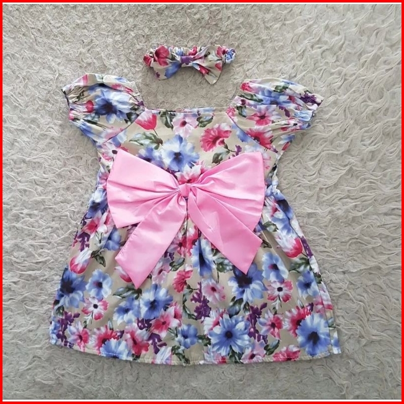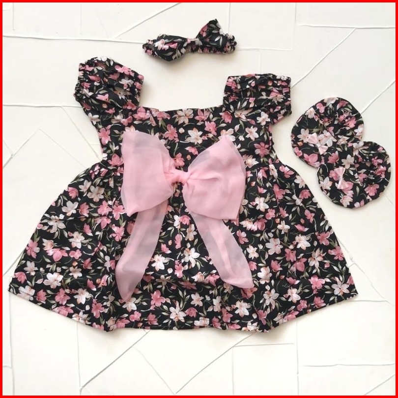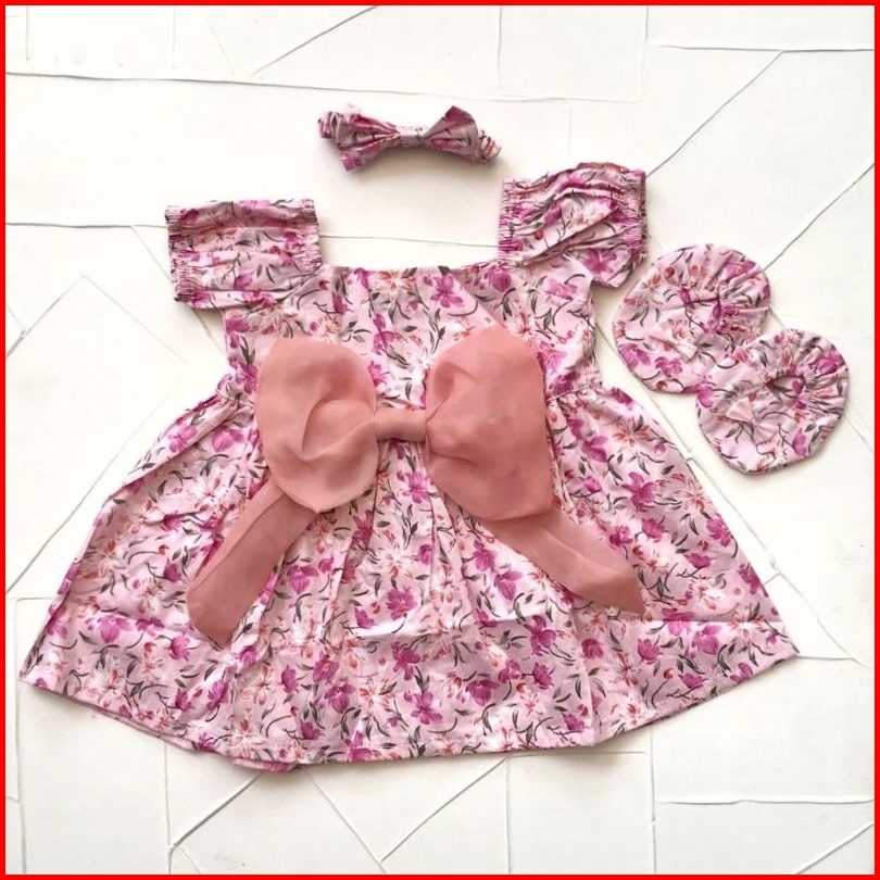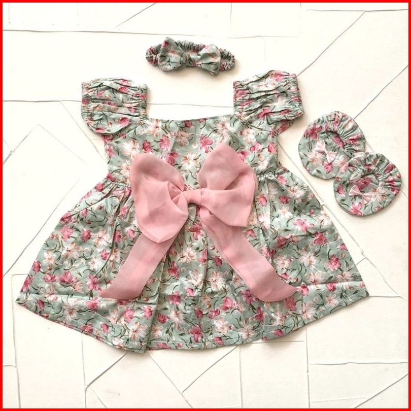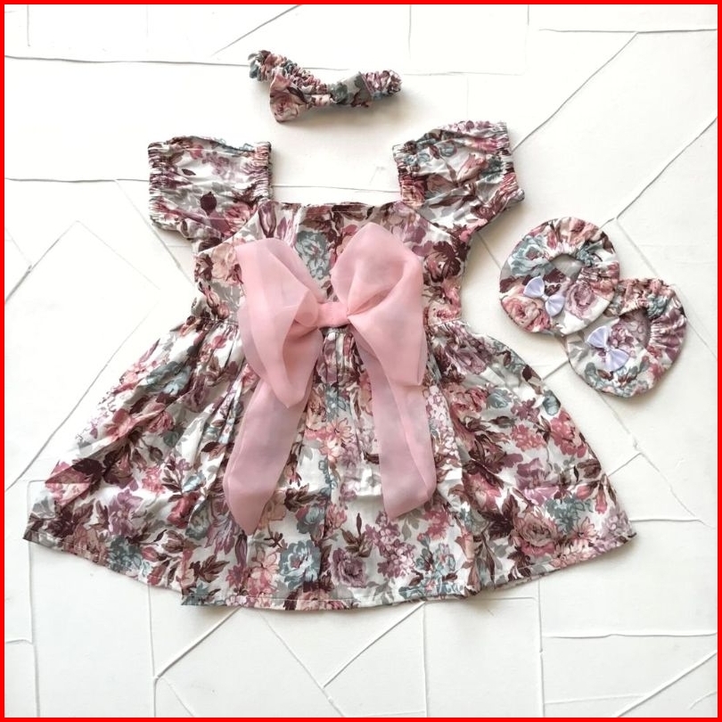 Dress Bayi Perempuan 0 6 Bulan Newborn Set Bandana Katun Jepang