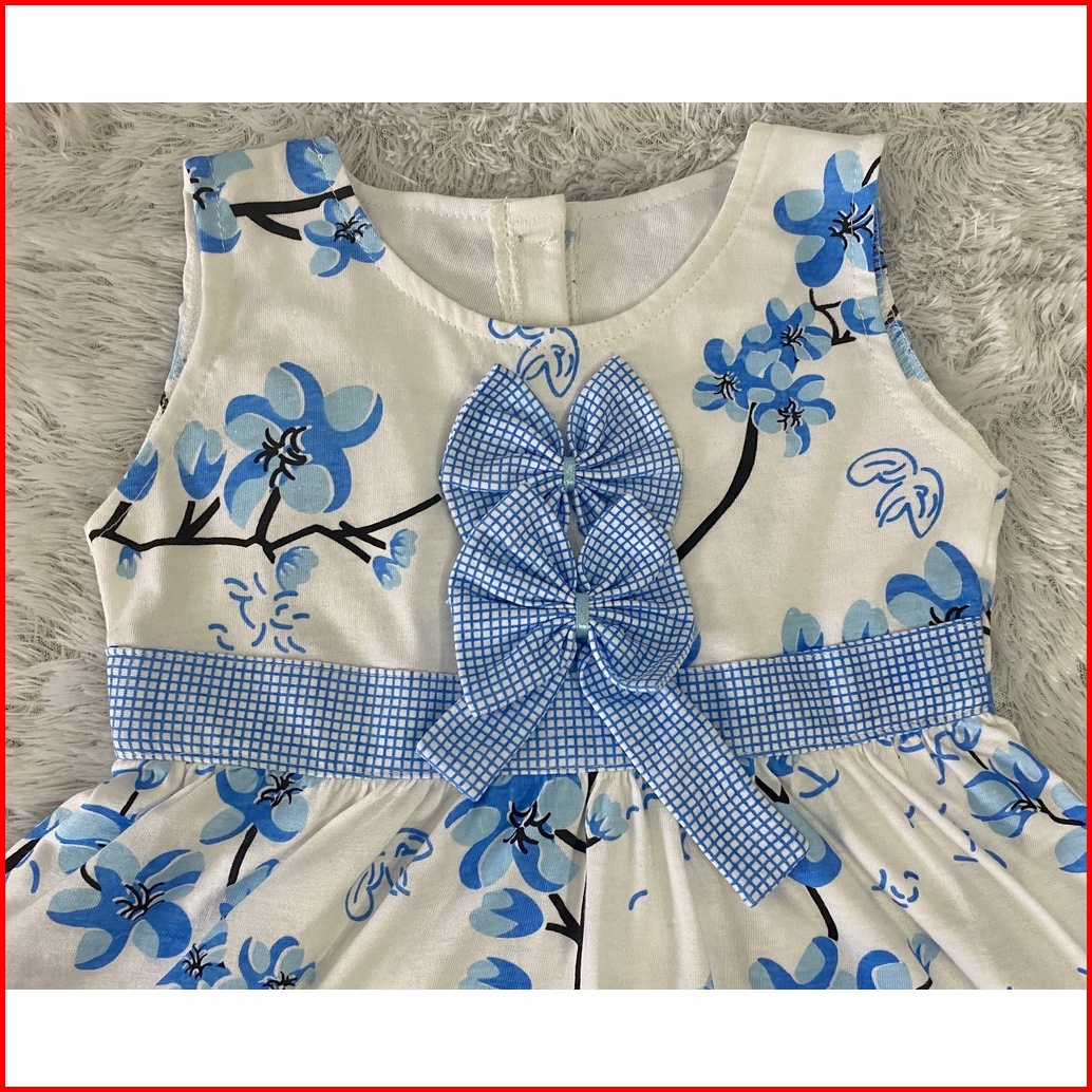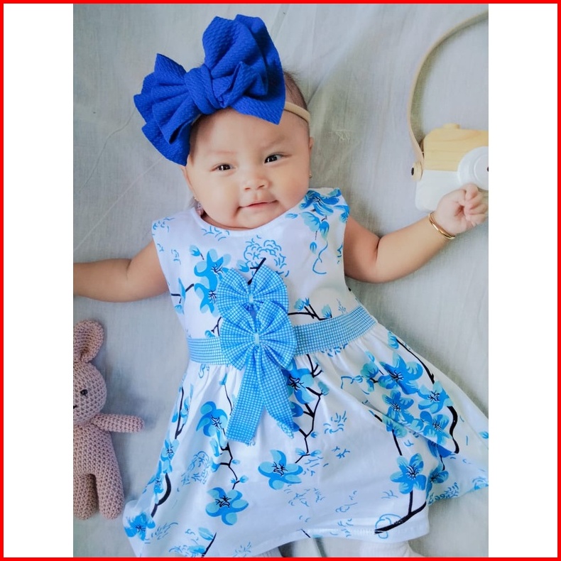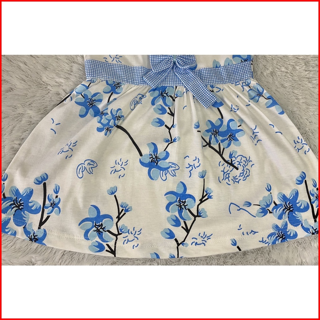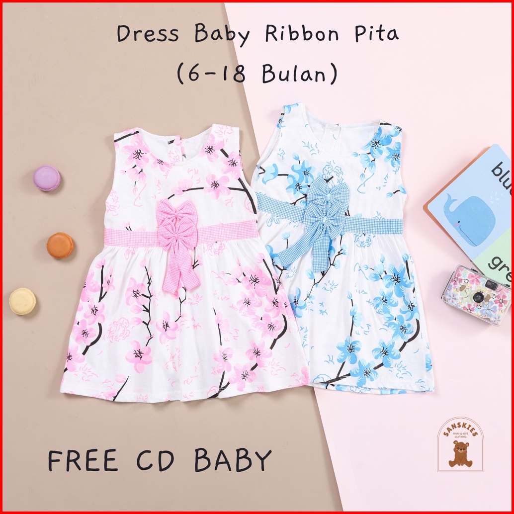 Dress Bayi Perempuan Ribbon Corak Bunga Pink Biru Untuk 6 - 18 Bulan Free Celana Dalam Baby