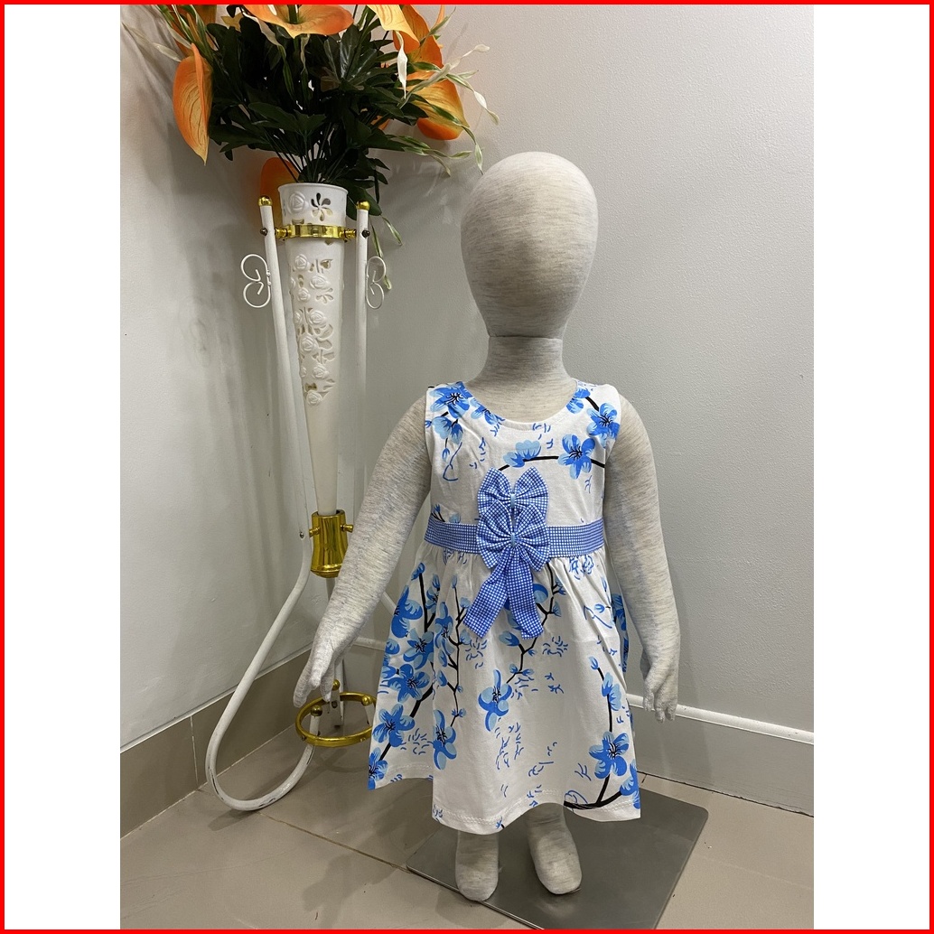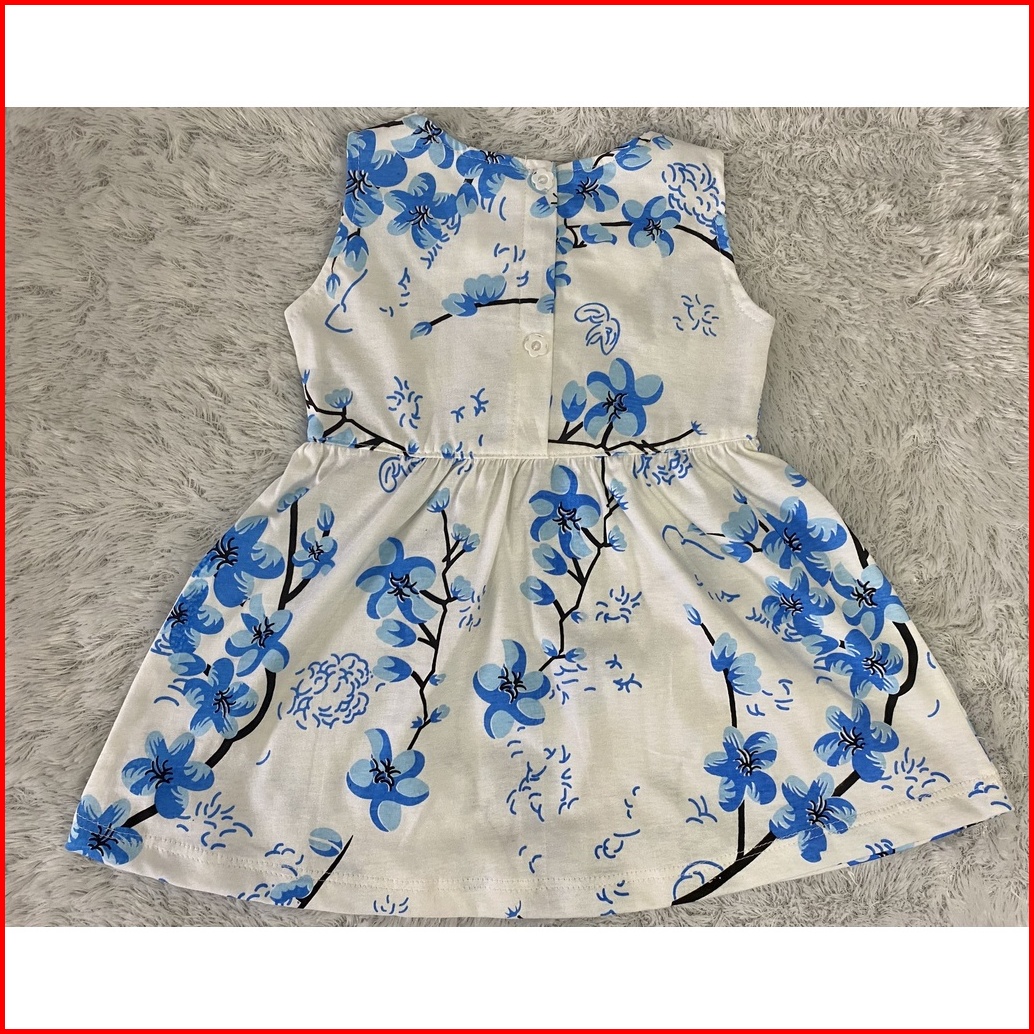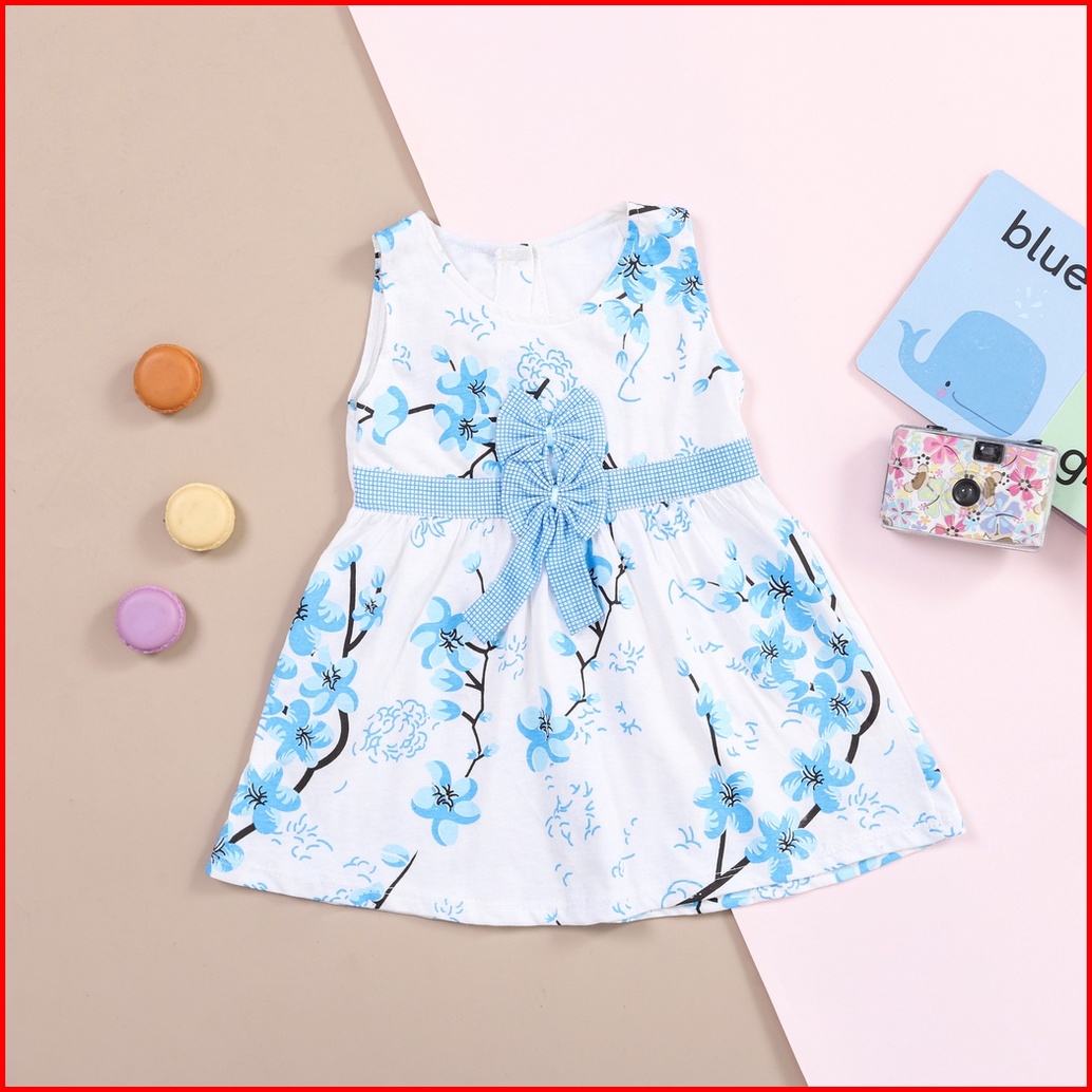Dress Bayi Perempuan Ribbon Corak Bunga Pink Biru Untuk 6 - 18 Bulan Free Celana Dalam Baby