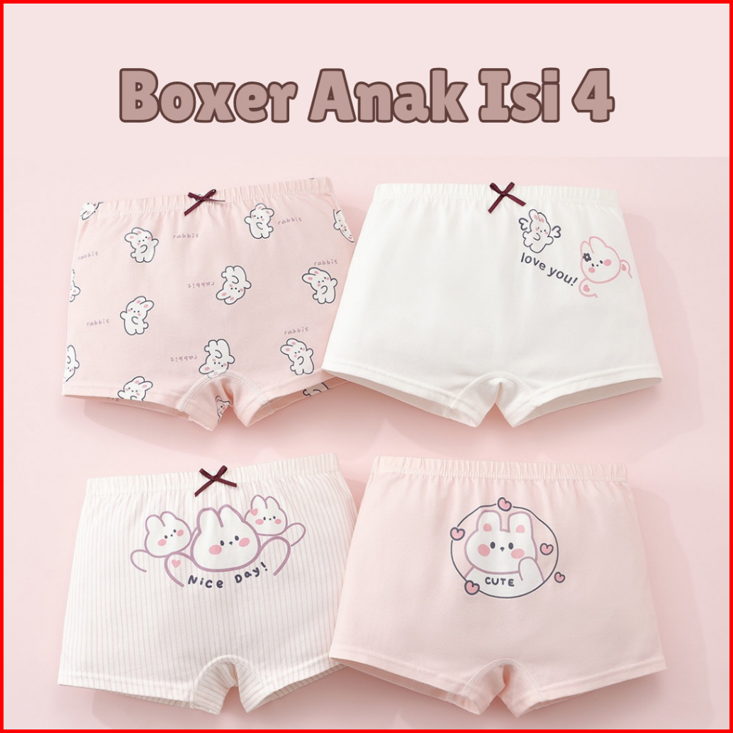 Restock Celana Dalam Anak Perempuan Model Boxer Isi 4 Pcs Untuk 1-12 Tahun