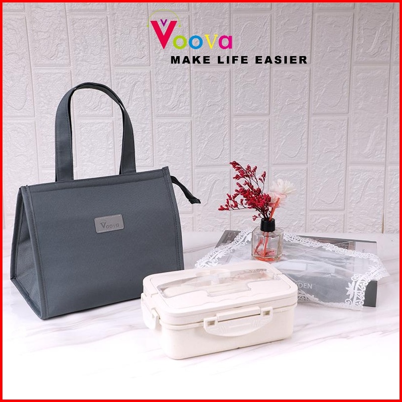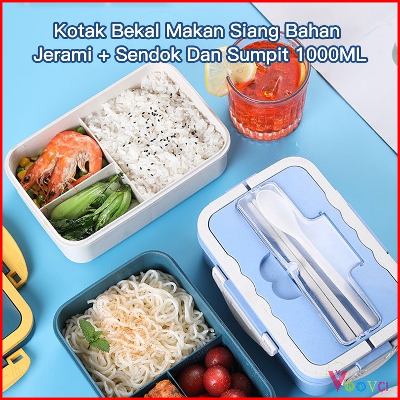 Voova Lunch Box Dan Lunch Bag Tas Bekal Kotak Bekal Makan Siang Bahan Jerami Pegangan Melengkung Sendok Dan Sumpit Memil