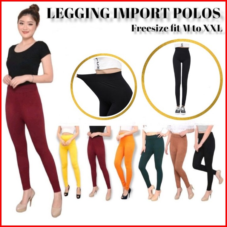 Ninabobo Cw002 Celana Legging Panjang Wanita Hitam Polos Soft Rayon All Size Leging Jumbo Hotpants