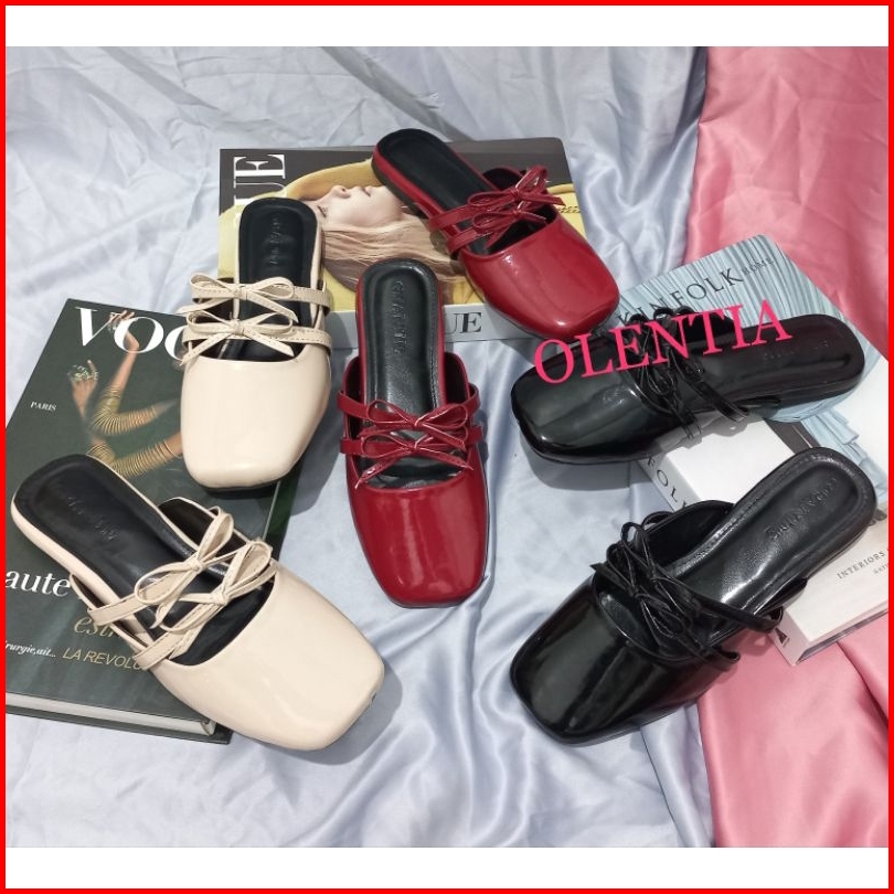 Sepatu Wanita Flatshoes Mules Dobel Strap Pita Jn 01