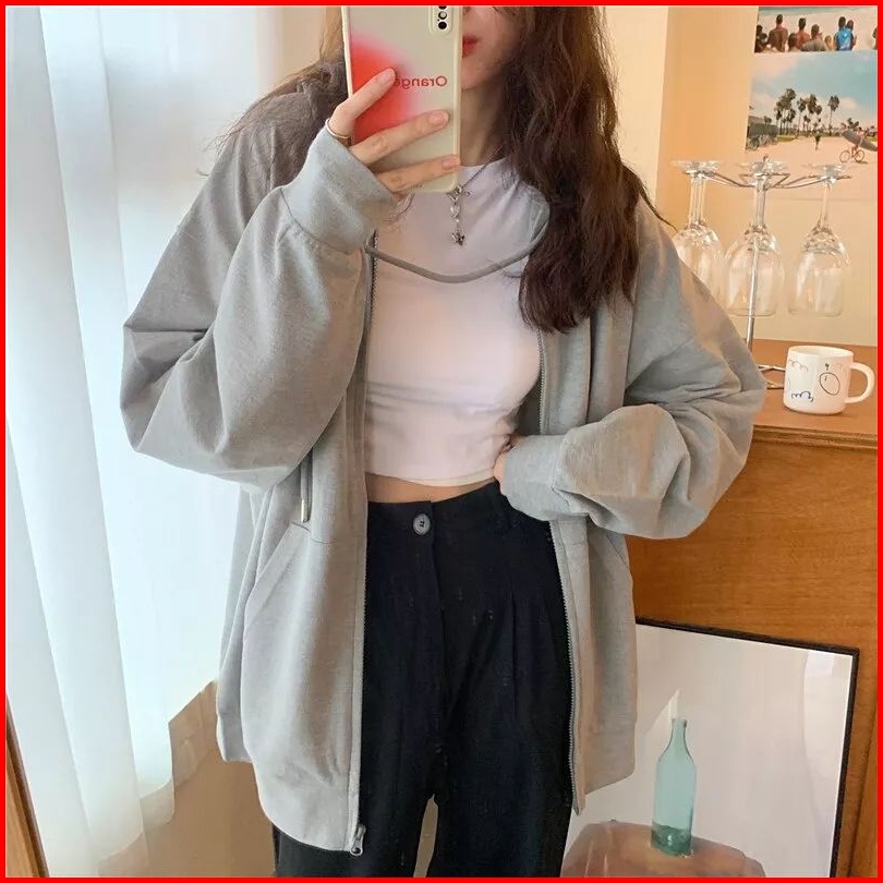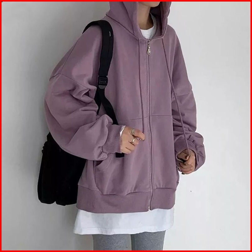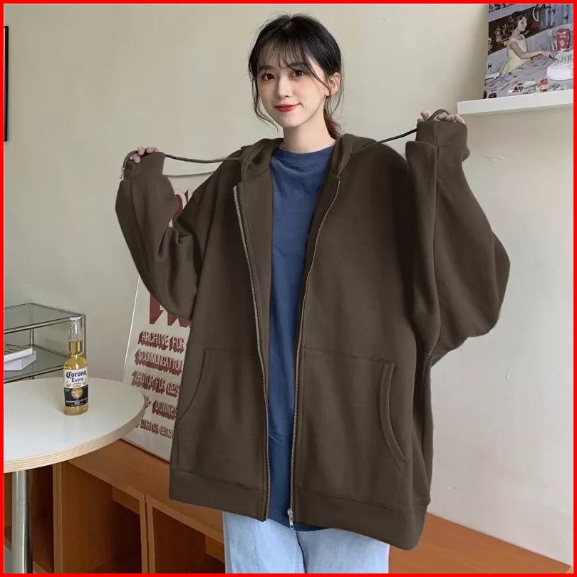 Hoodie Zipper Jumbo Xxl Hoodie Sweater Crewneck Sweatshirt Hudie Wanita Kekinian Oversize Fashion Outfit Ootd Korean Sty