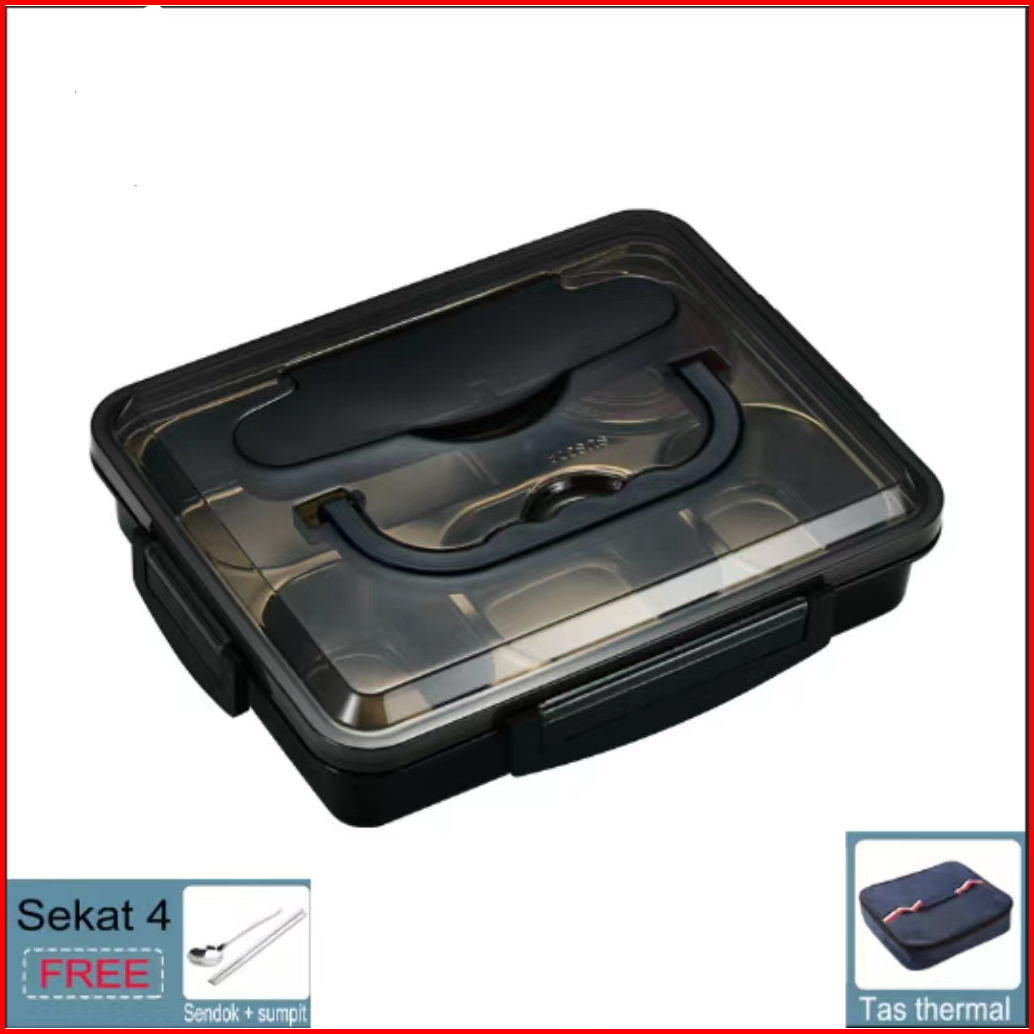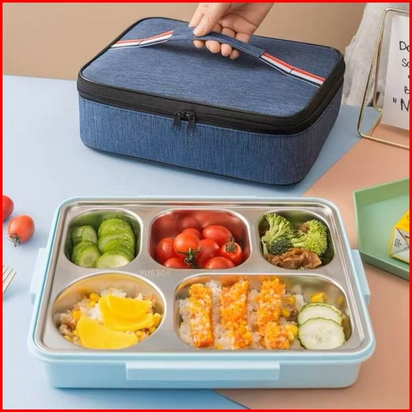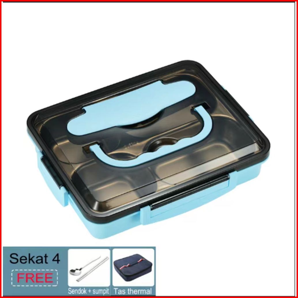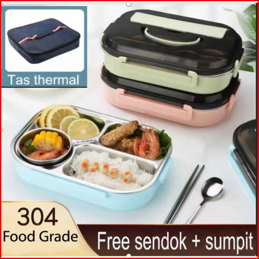 Lunch Box Kotak Makan Lengkap Dengan Tas Dan Alat Makan Kotak Bekal Berkualitas Stainless Steel Tahan Panas Dan Anti Tum