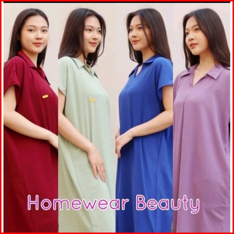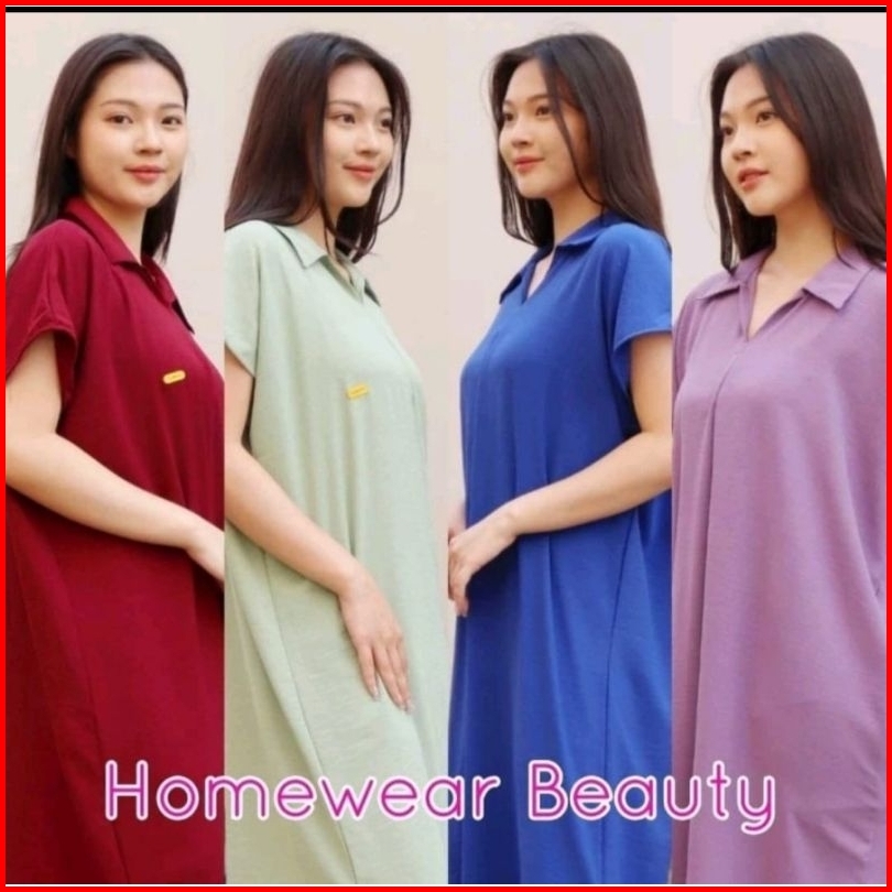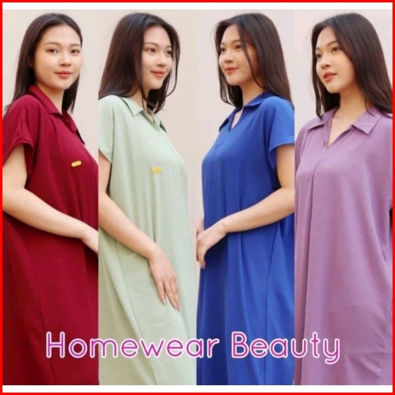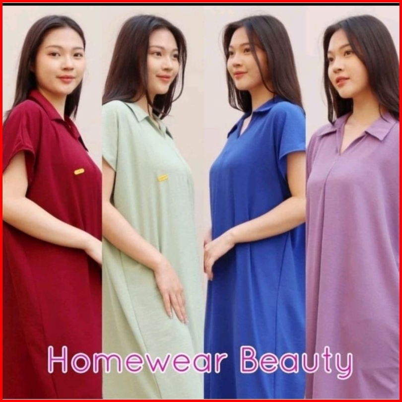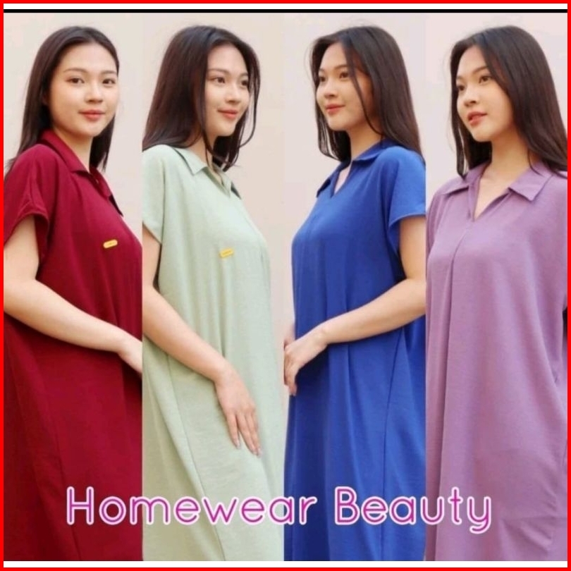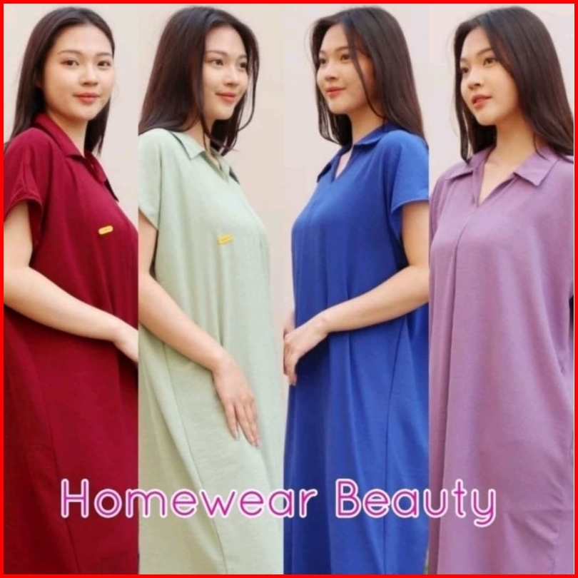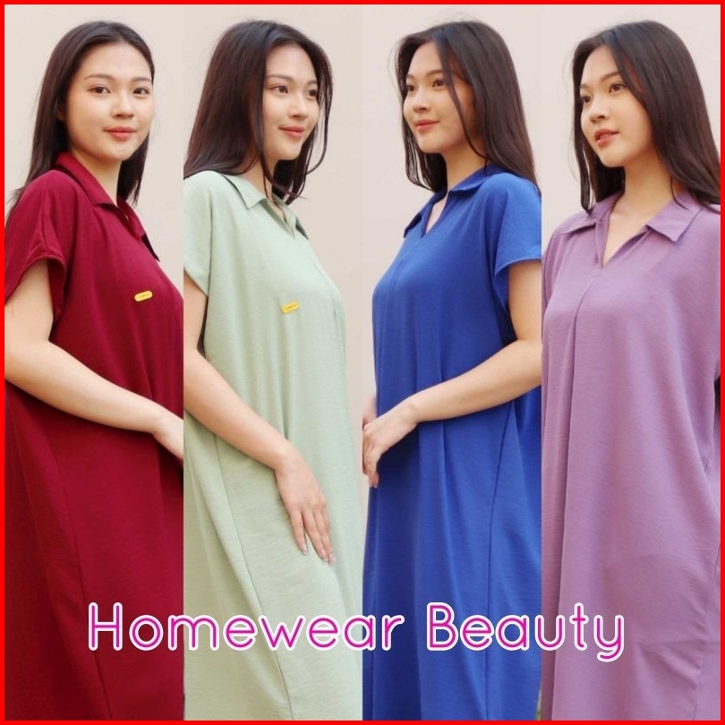 Daster Aletha Dress Wanita Kerah Collar Cringkle Airflow Polos