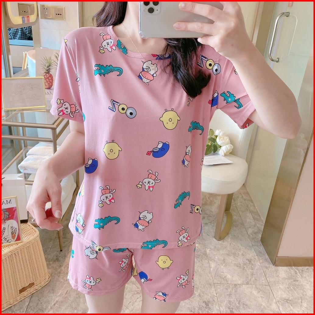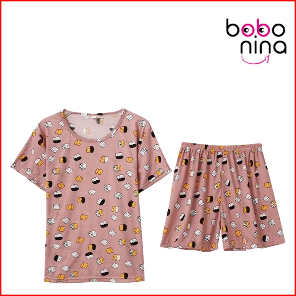 Ninabobo Bt001 Baju Tidur Piyama Set Stelan Baju Tidur Wanita Lengan Pendek Cp Dewasa Pakaian Piama Kartun Karakter Paja