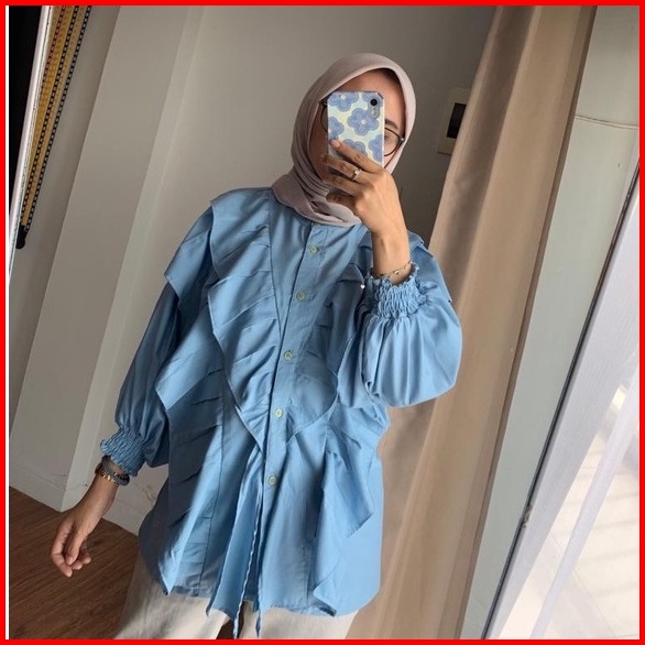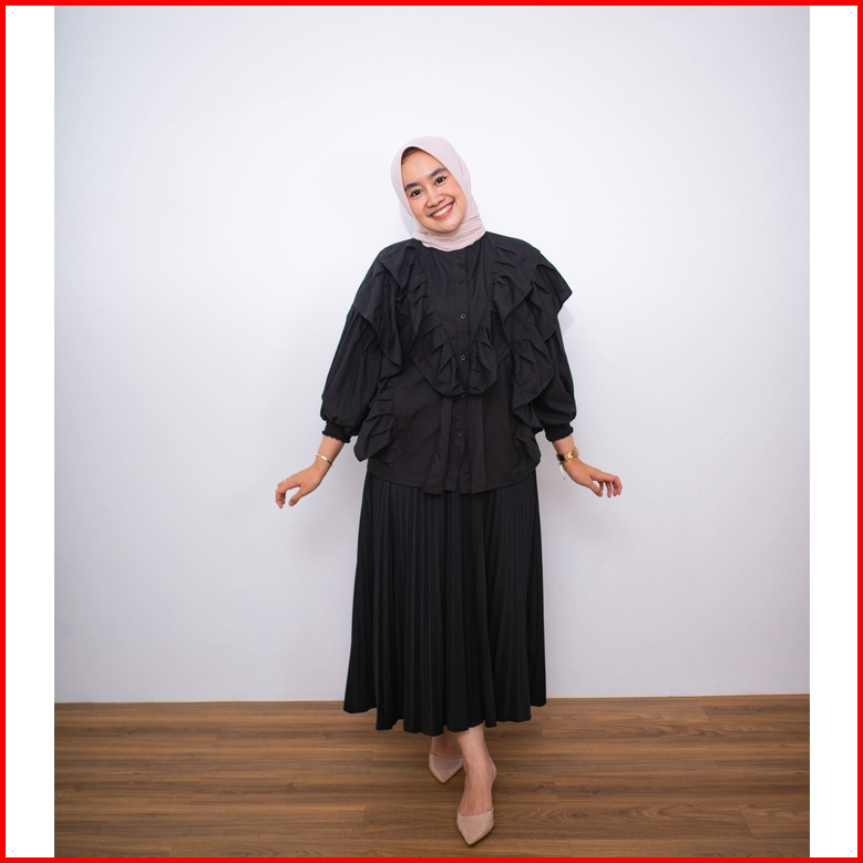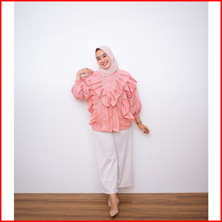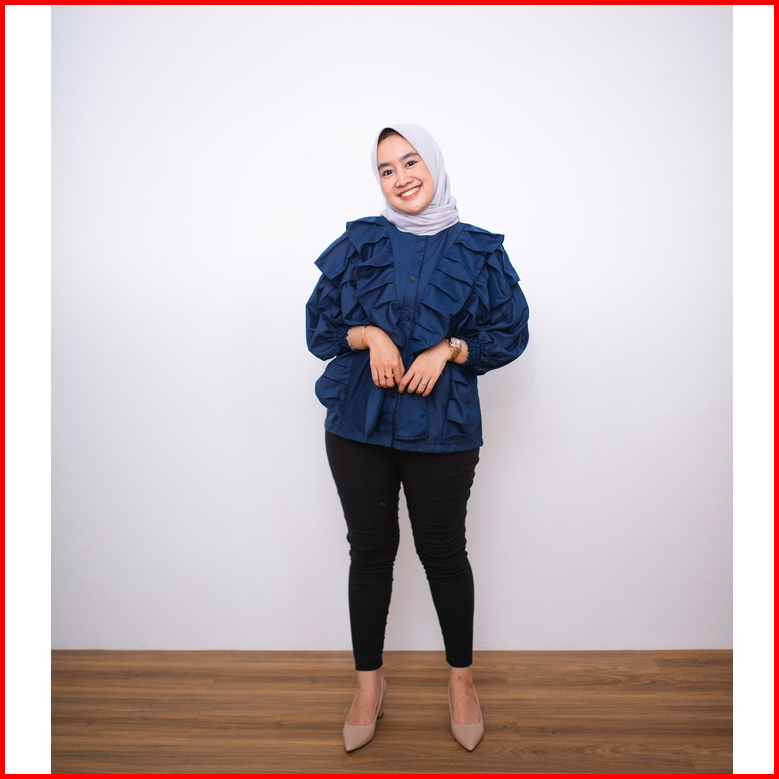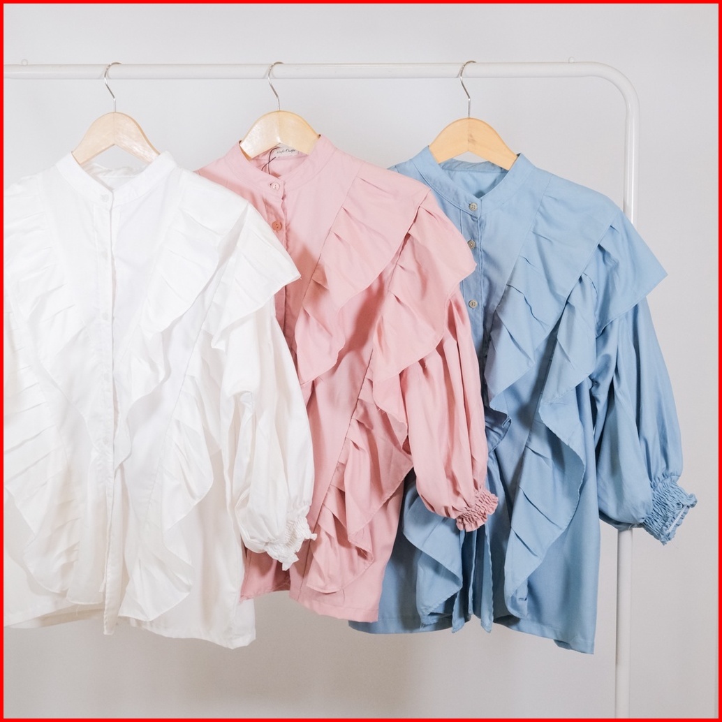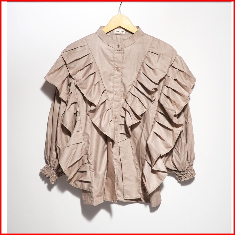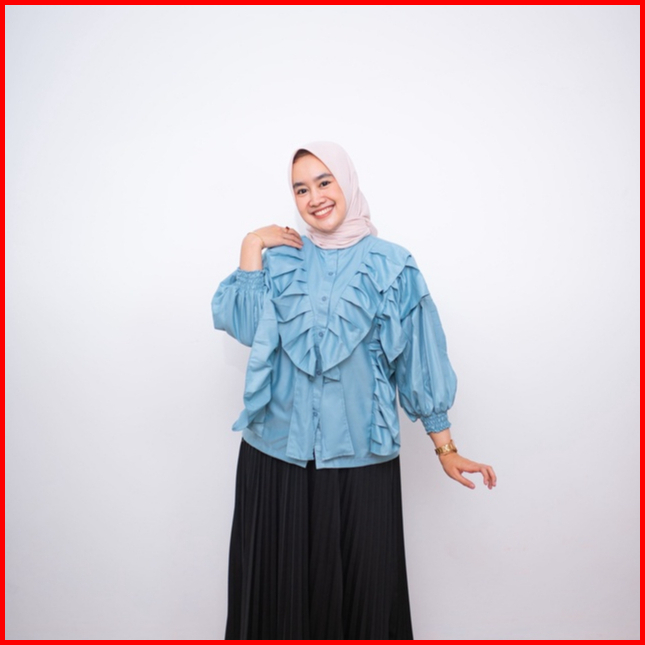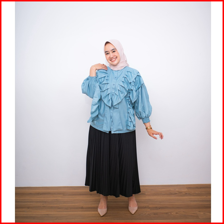 Nafii Deena Top Kemeja Wanita Polos Ruffle Toyobo Murah