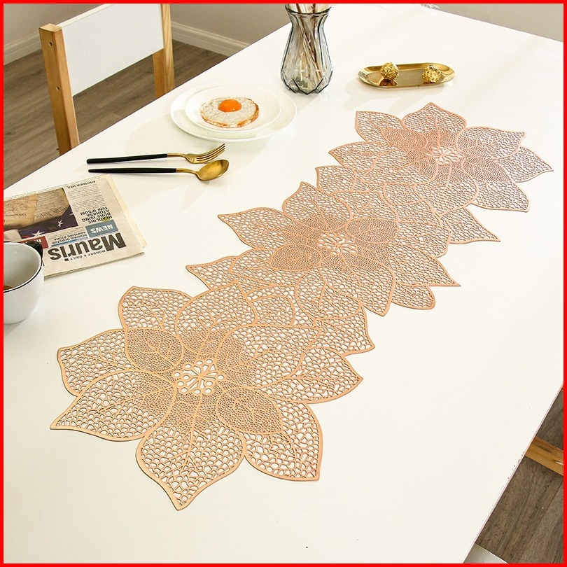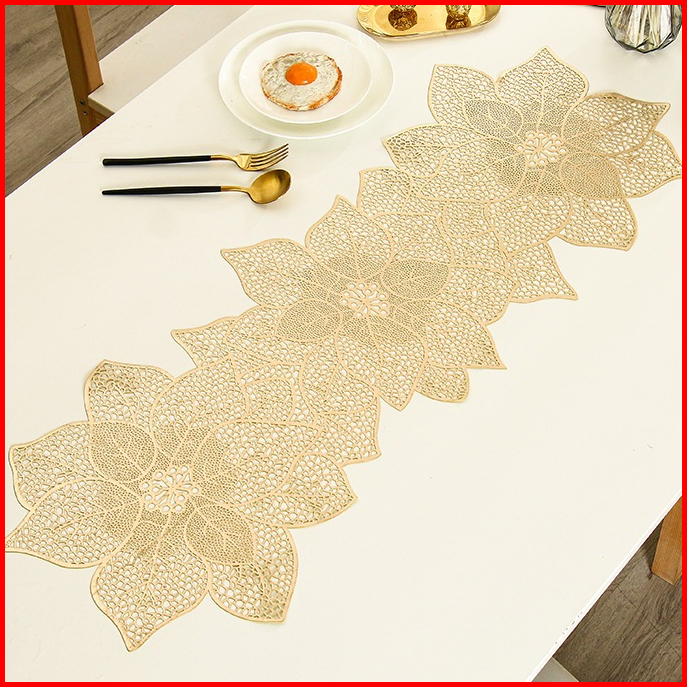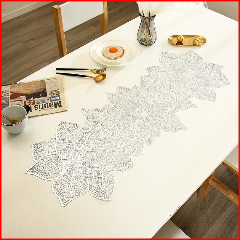 Table Runner Taplak Meja Tamu Makan Panjang Pvc Mewah 3 Flowers