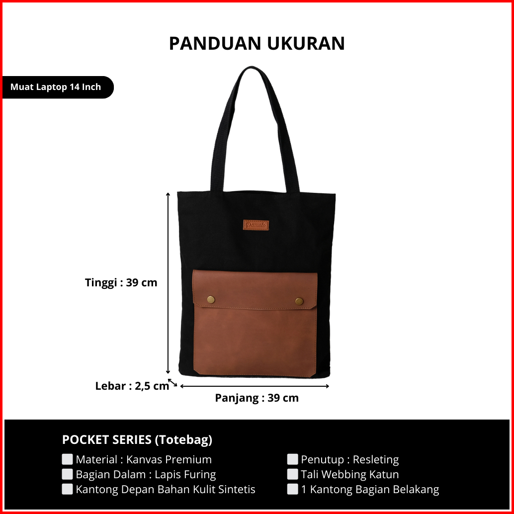 Pamole Totebag Kanvas Totebag Kuliah Totebag Kerja Penutup Resleting Totebag Unisex - Pocket Series