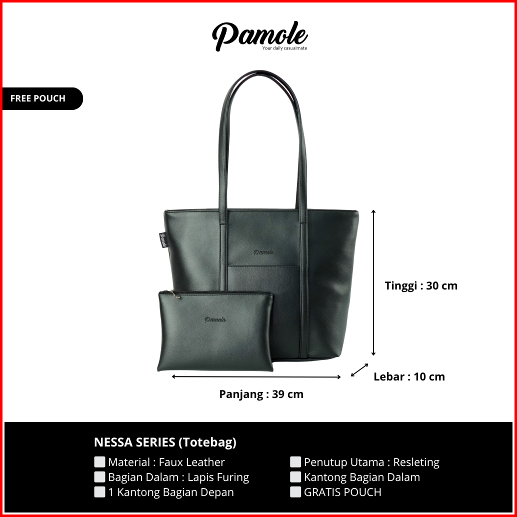 Pamole - Tas Tote Bag Wanita Gratis Pouch Totebag Kuliah Totebag Kerja - Nessa Series