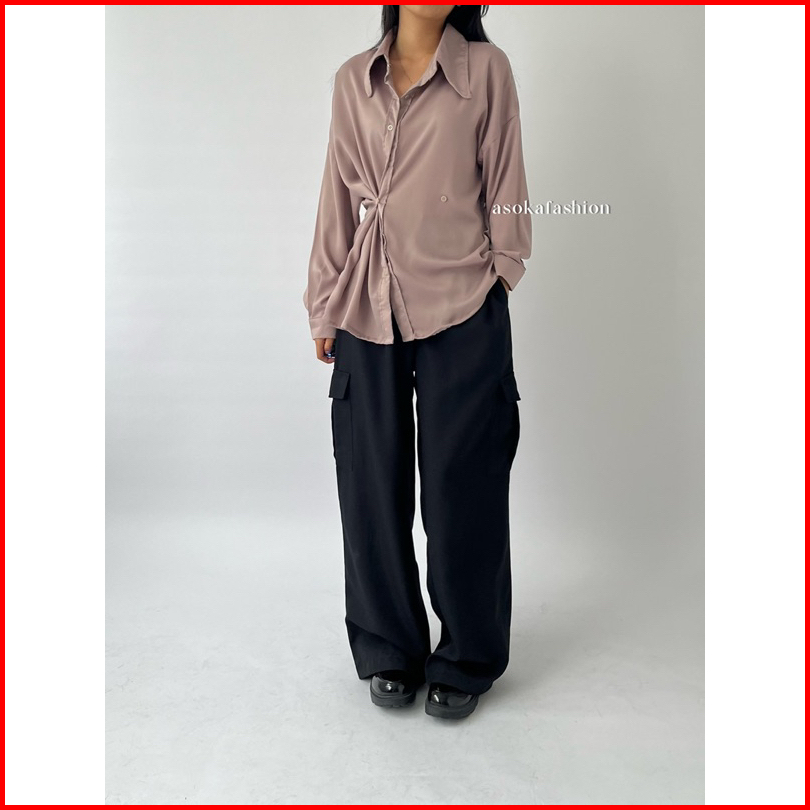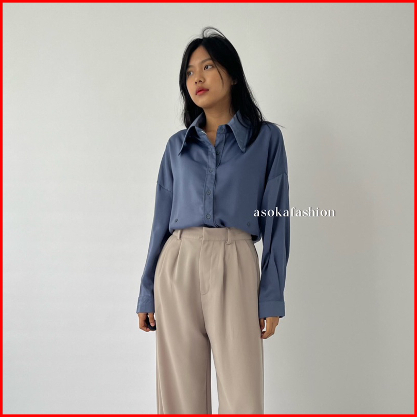 Asoka Hermesa Shirt 2044 - Kemeja Trendy Oversize Polos Wanita - Outfit Lebaran