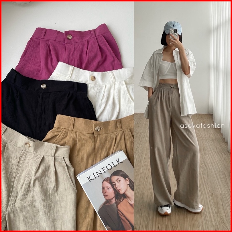 Asoka Beatrix Pants 1103 - Celana Kulot Linen Crinckle Highwaist I Celana Basic Wanita I Cullote Highwaist