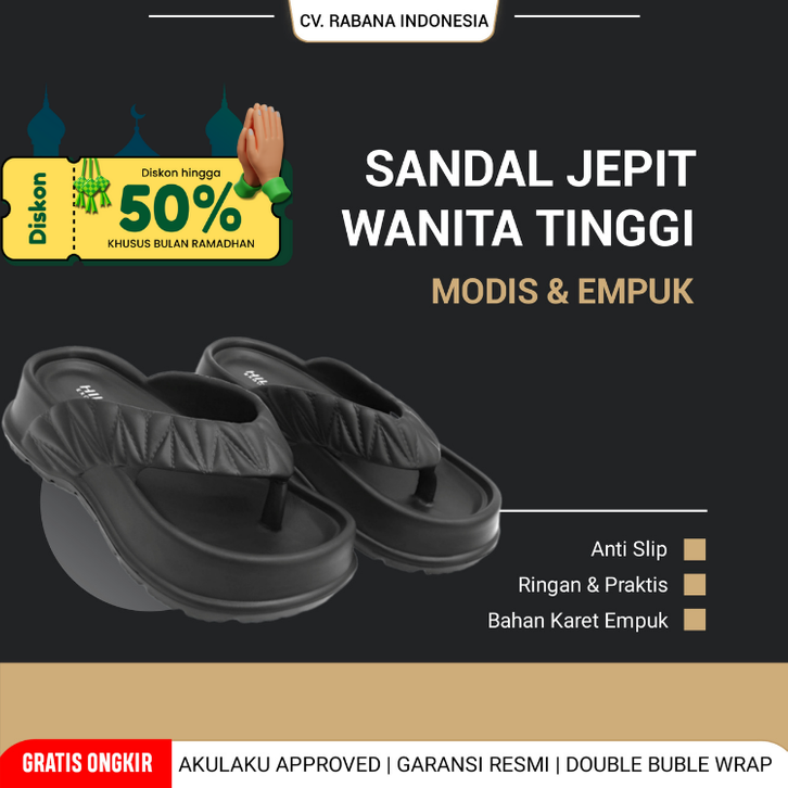 Sandal Jepit Hak Tinggi Wanita Dewasa Modis Sendal Cewe Casual Santai Bahan Karet Empuk Ringan Kekinian