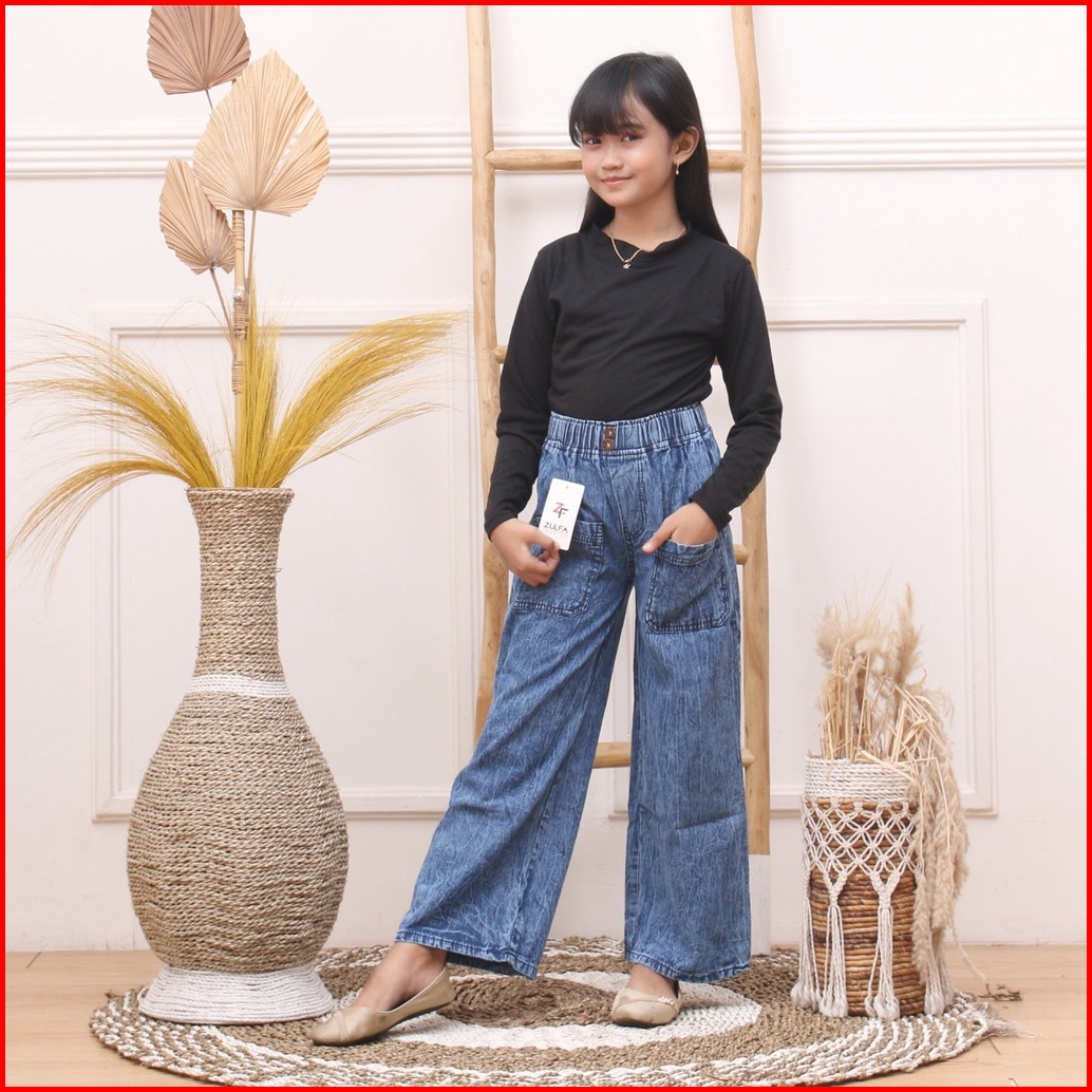 Celana Kulot Jeans Anak Saku Depan Usia 7-13 Tahun
