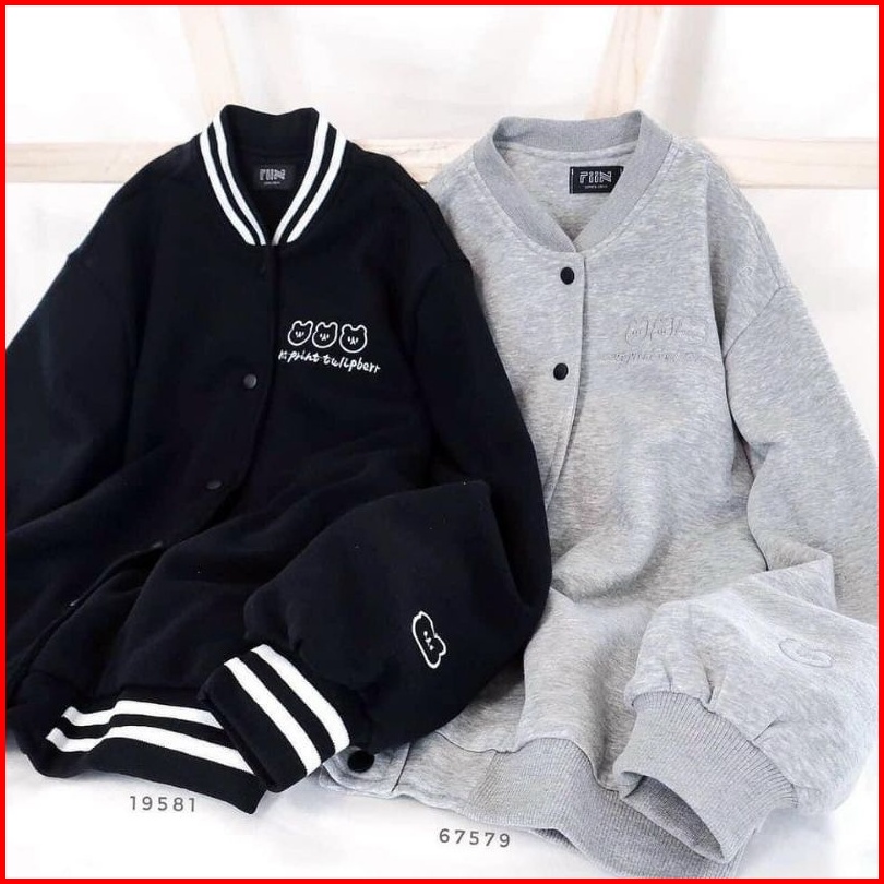 Bordir Sweater Jaket Baseball Jumbo Wanita Oversize Varsity Jaket Net Print Jaket Bomber Wanita