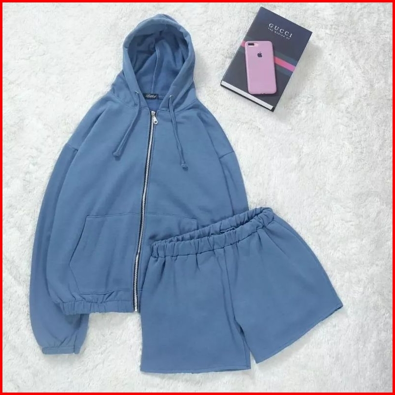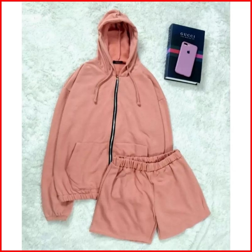 Joy One Set Jaket Short Pants Unisex Wanita - Pria Bahan Fleece Premium One Set Korean Style