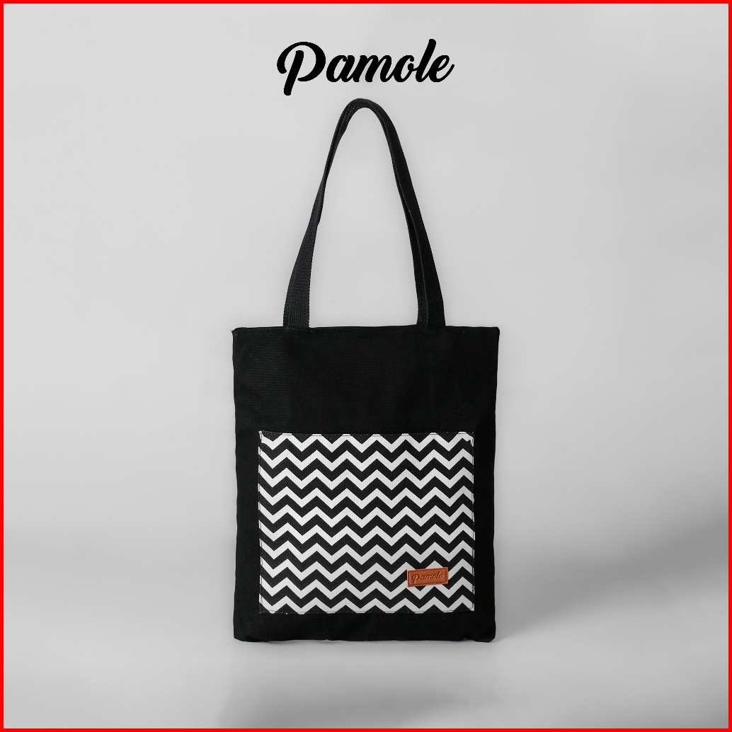 Pamole - Tote Bag Kekinian Bahan Kanvas Penutup Resleting Full Furing Lapis Dalam - Anna Series