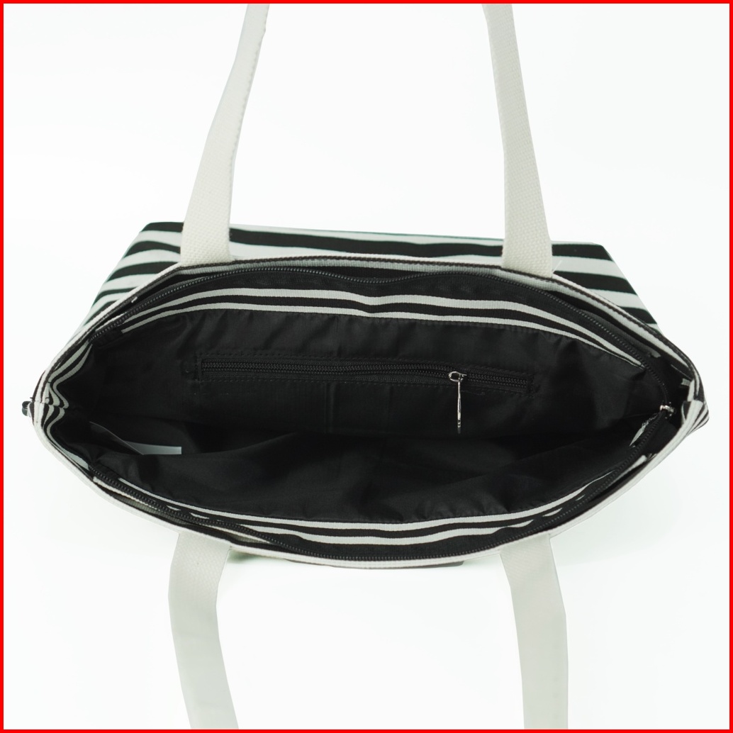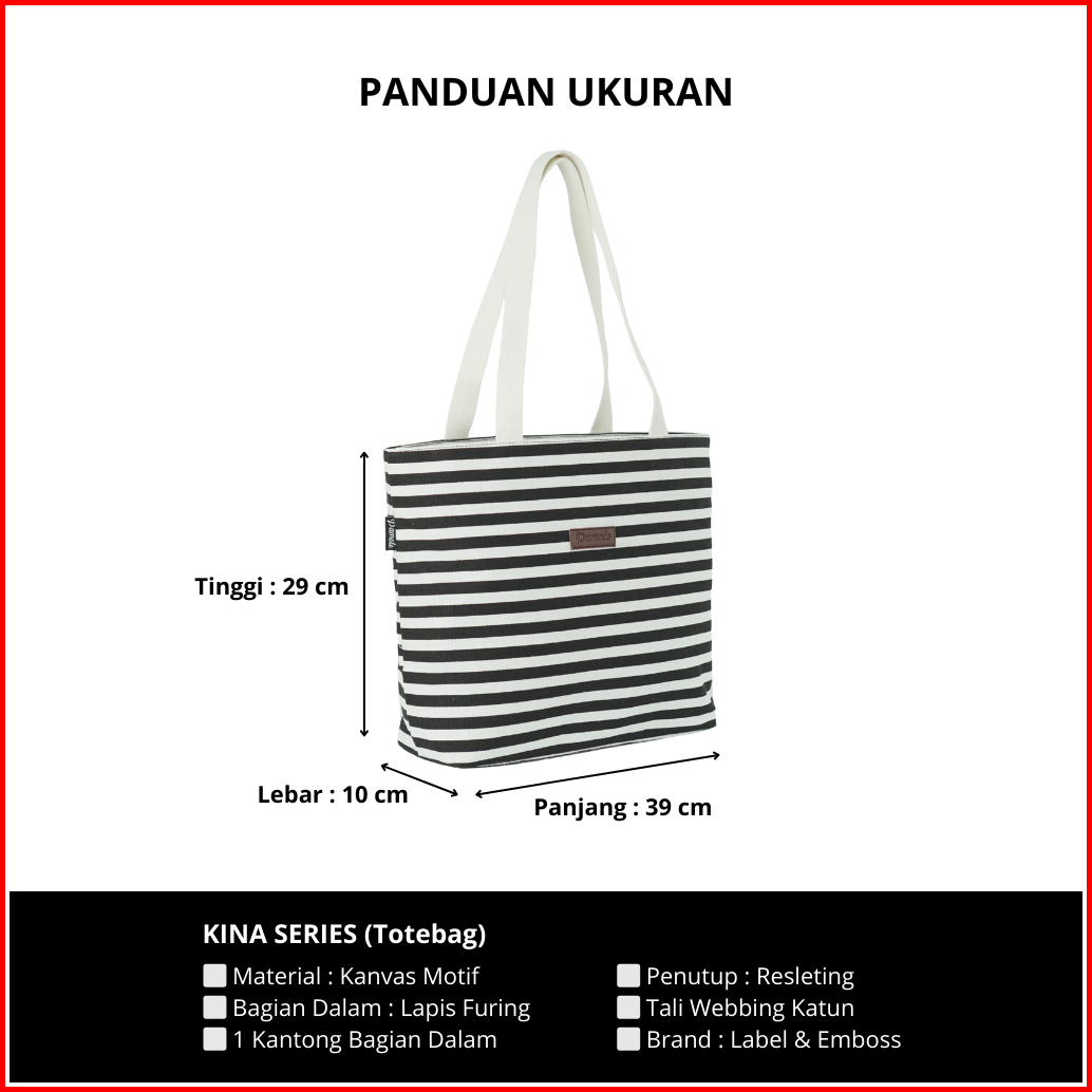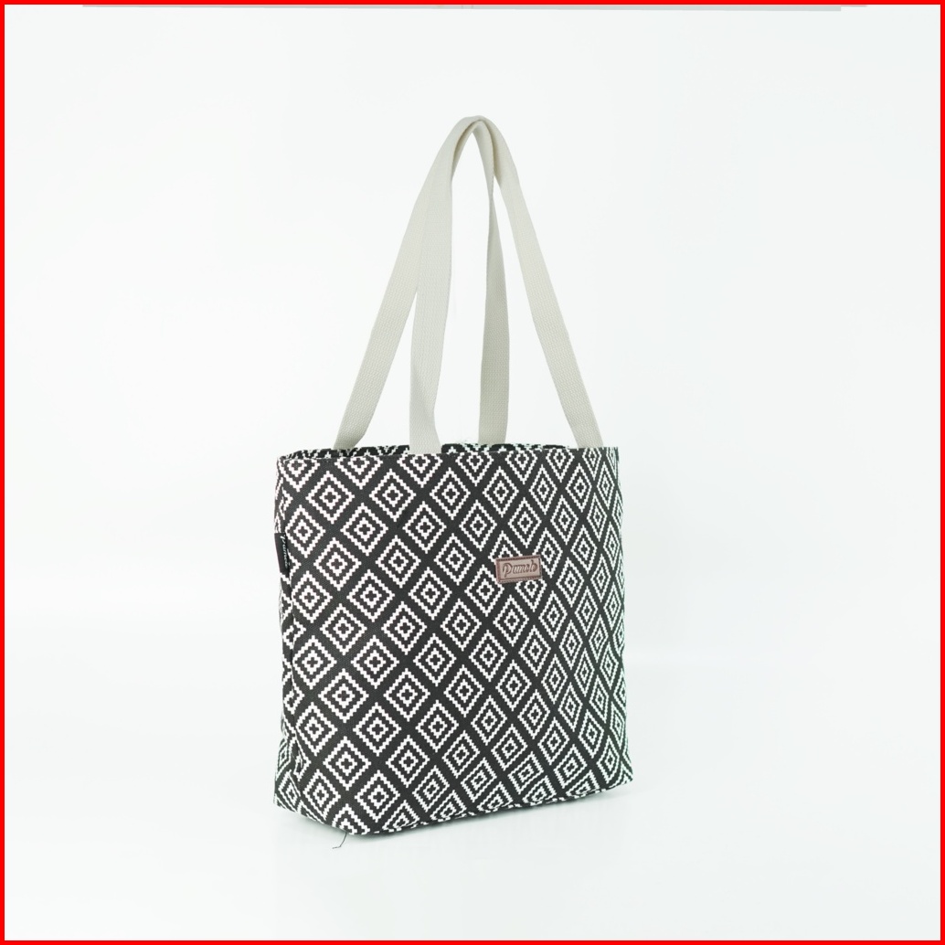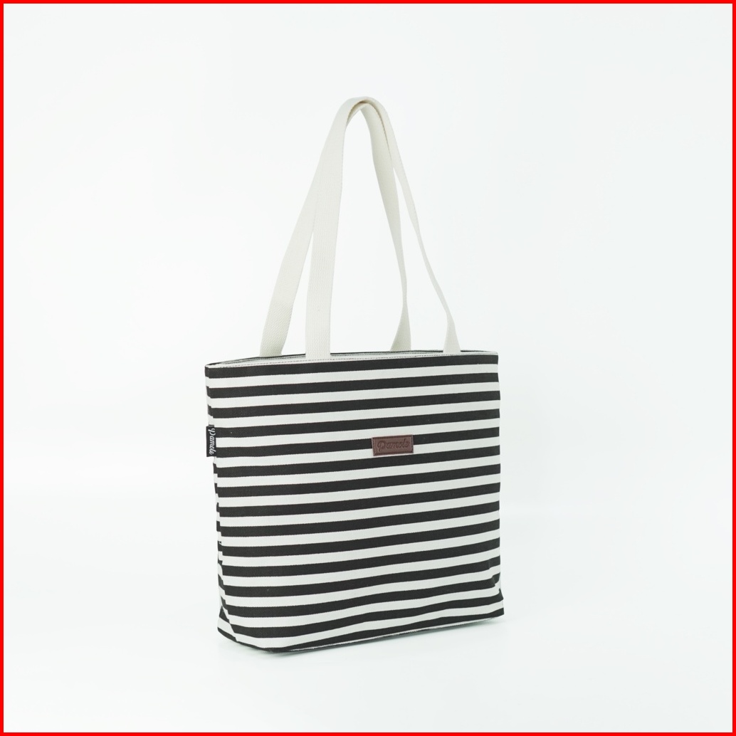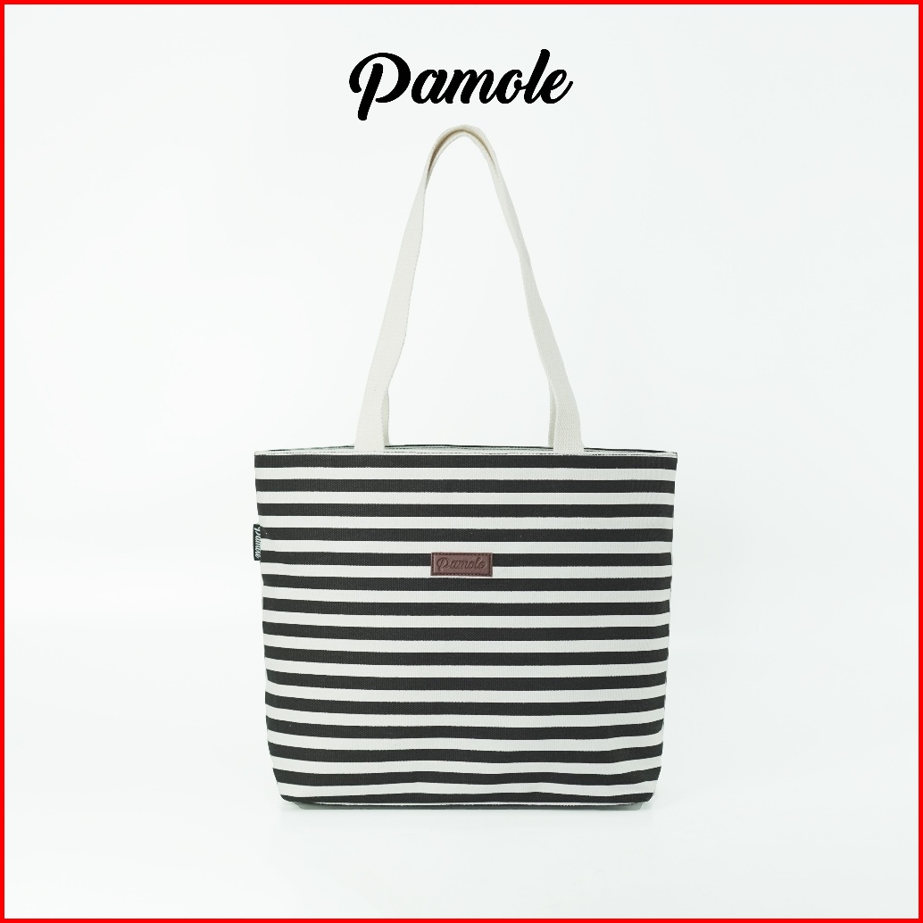 Pamole Tas Tote Bag Wanita Resleting Bahan Kanvas - Kina Series